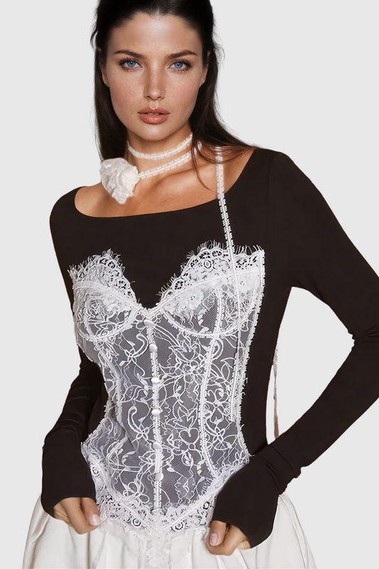 52% İndirimAilie Düşük Omuzlu Dantel Uzun Kollu Üst