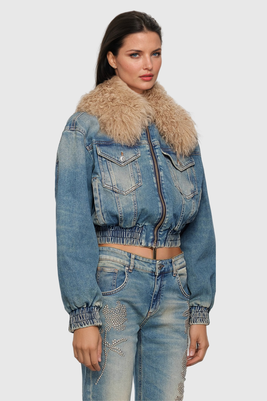 42% İndirimAkuna Kürk Dantelli Cepli Denim Ceket