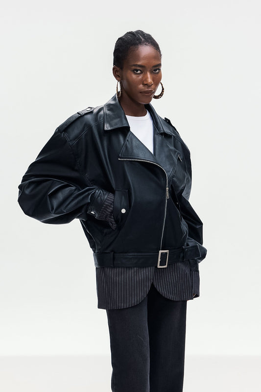 41% İndirimZiya File Deconstruct Tokalı Deri Ceket
