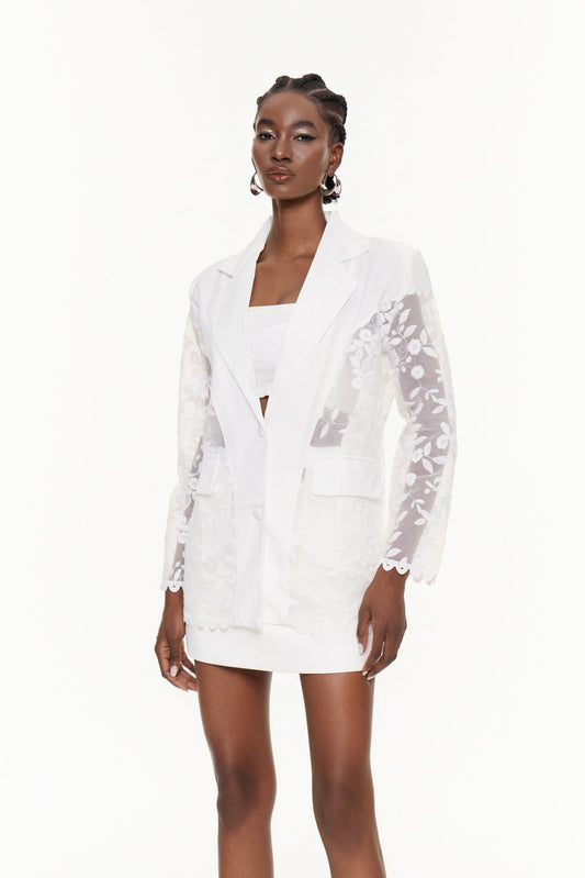 40% İndirimBakhtiyar İşlemeli Pullu Beyaz Kot Ceket