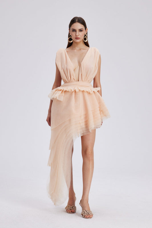 44% İndirimBosmat Ruch File Asimetrik Mini Kayısı Elbise