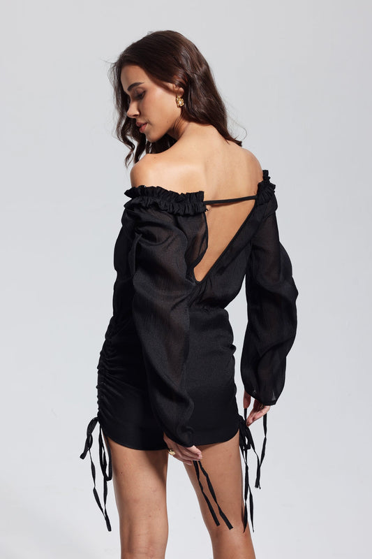 Isadora Siyah Fileli Sırtı Açık Bağcıklı Mini Elbise