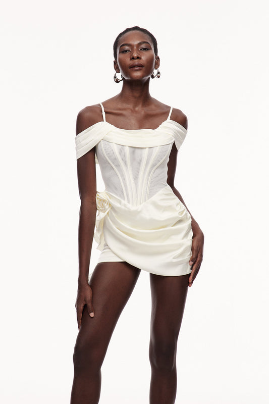 43% İndirimCayetano Korseli Dantelli Saçaklı Mini Elbise