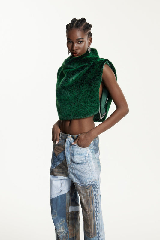 50% İndirimBaldomero Leopar Kürk Kapşonlu Kolsuz Üst
