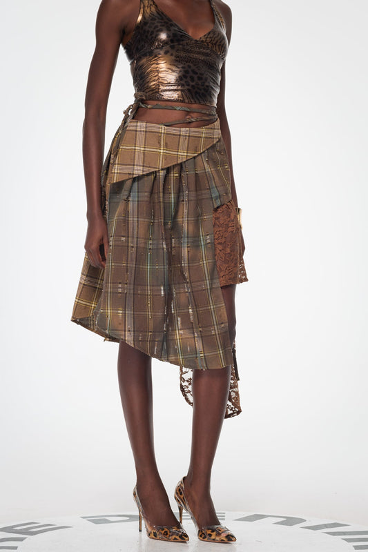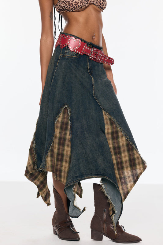 38% İndirimBahman Patchwork Asimetrik Ekose Midi Etek