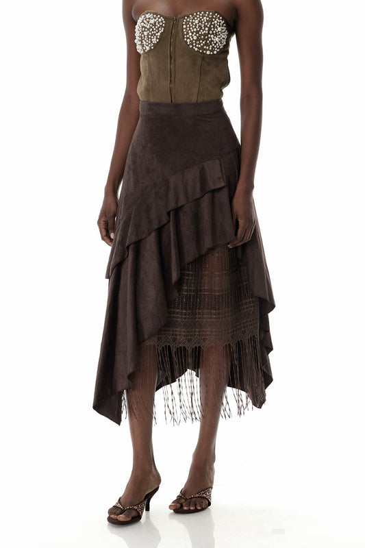 47% İndirimCruz Süet Volanlı Dantel Uzun Etek