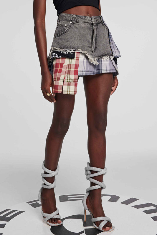 38% İndirimKenna Grid Deconstruct Siyah Patchwork Mini Etek