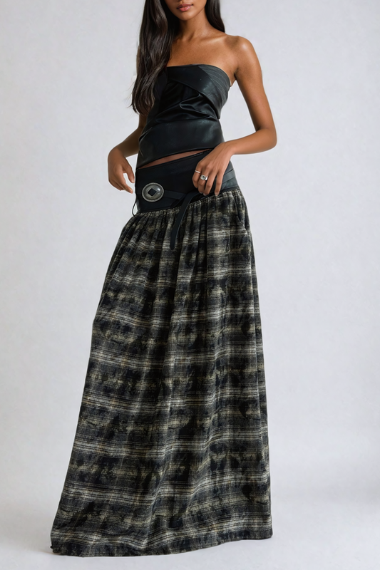 49% İndirimBaila Plaid Patchwork Uzun Etek