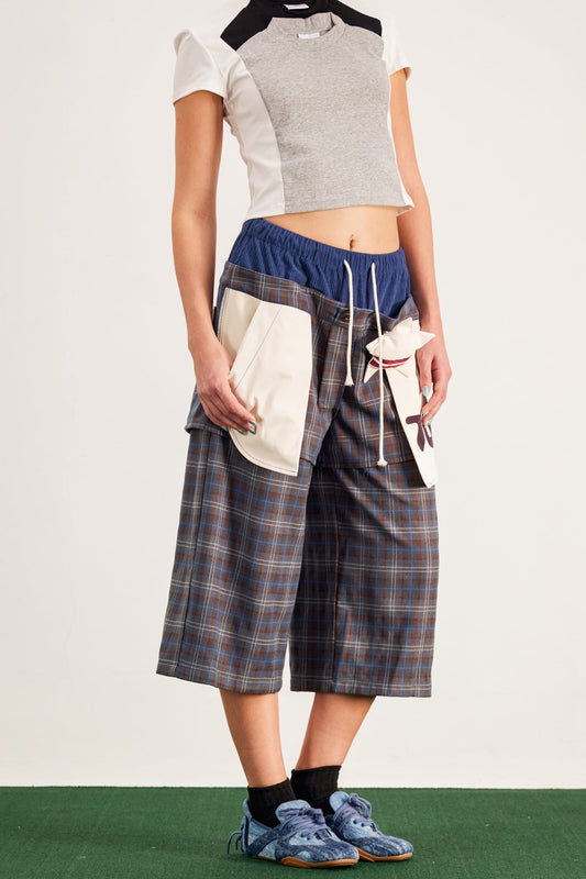 Bahman Patchwork Asimetrik Ekose Midi Etek
