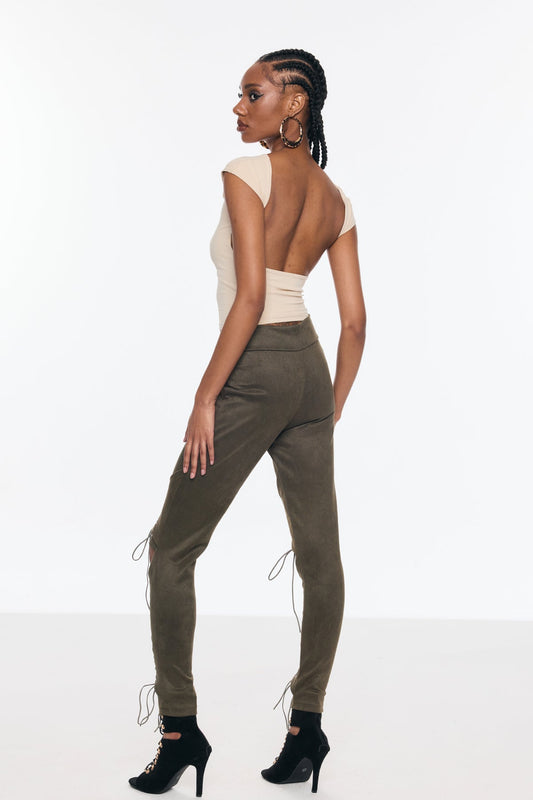 Benicio Süet Kesik Bağcıklı Dar Pantolon