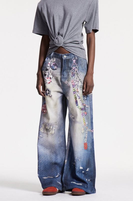 43% İndirimCallahan Baskılı Geniş Paça Kot Pantolon