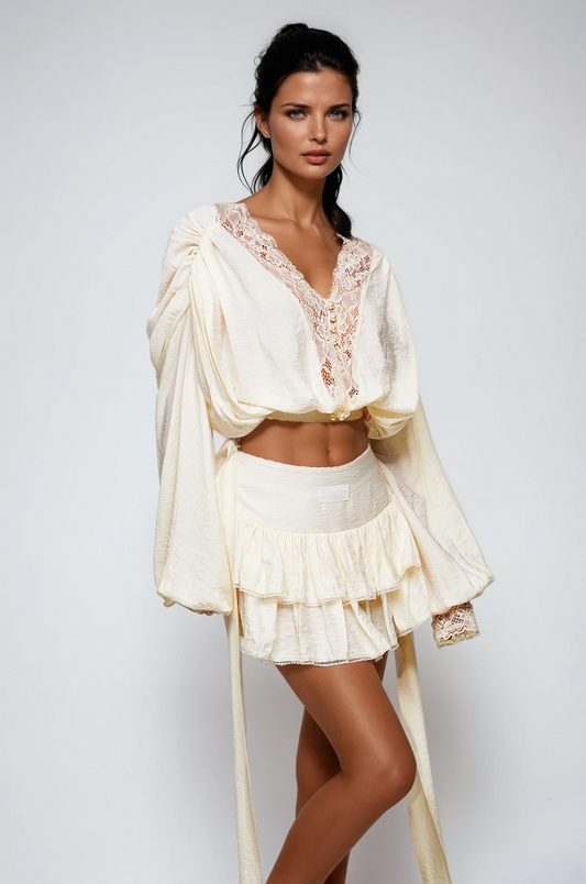 Aravinda Büzgülü Dantelli Fırfırlı Pantolon Takım