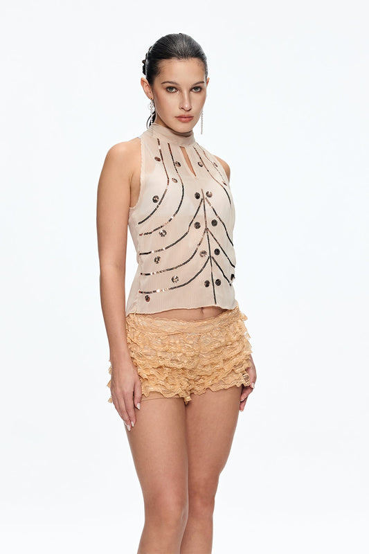 42% İndirimCailean Payet Dantel Fırfır Pantolon Takım