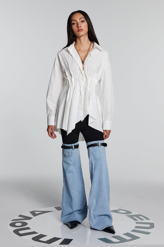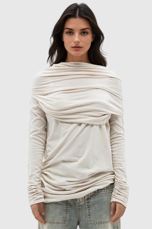 39% İndirimDarrell Tek Omuzlu Büzgülü Uzun Kollu Beyaz Üst