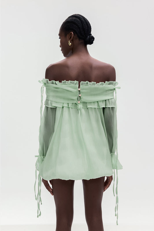 46% İndirimAneirin Omuz Açık Yeşil File Volanlı Üst