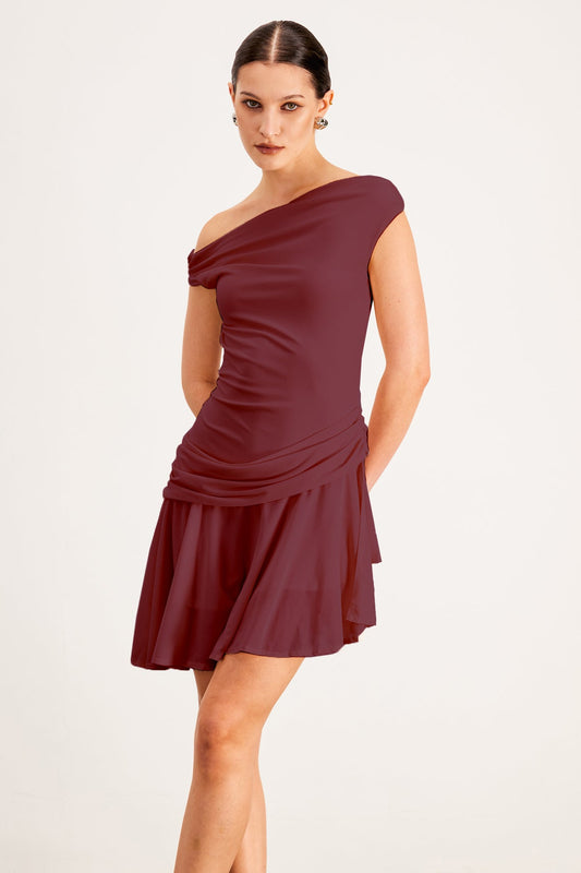 52% İndirimBalor Asimetrik Tek Omuzlu Kırmızı Mini Elbise