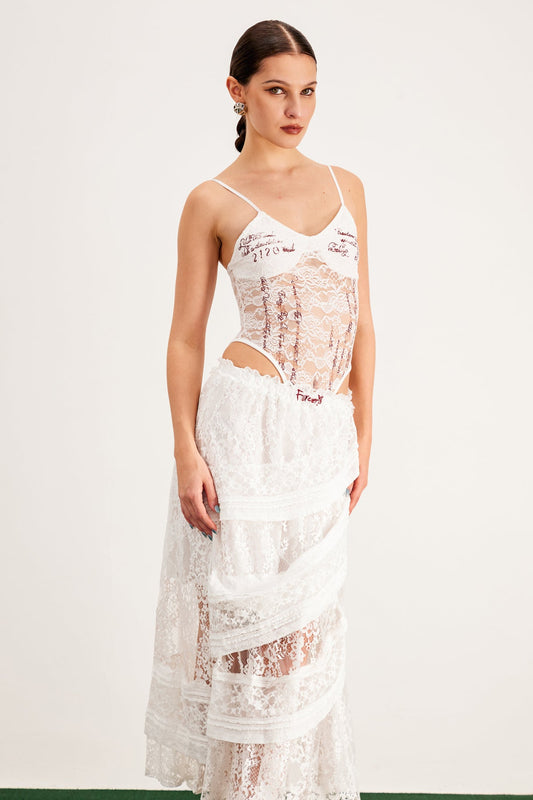 49% İndirimBalendin Dantel Kesikli File Mini Elbise Beyaz
