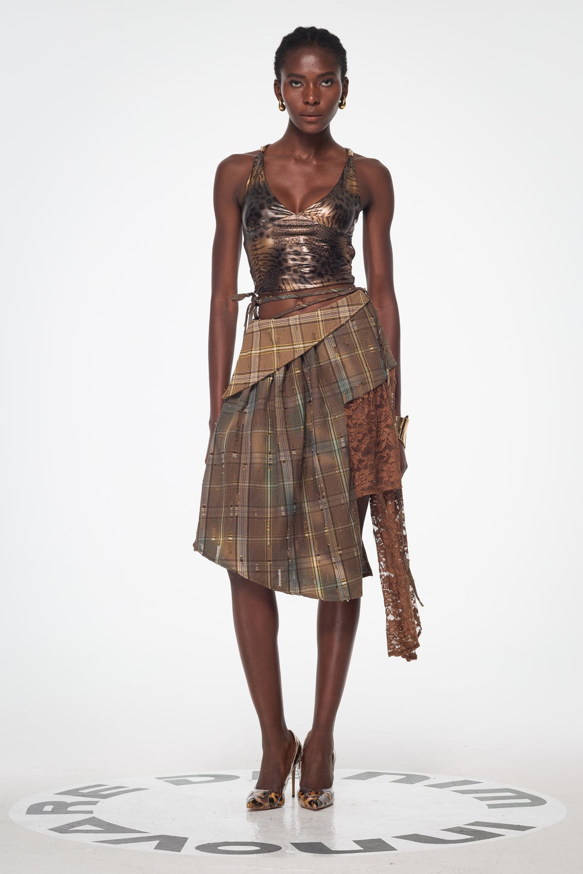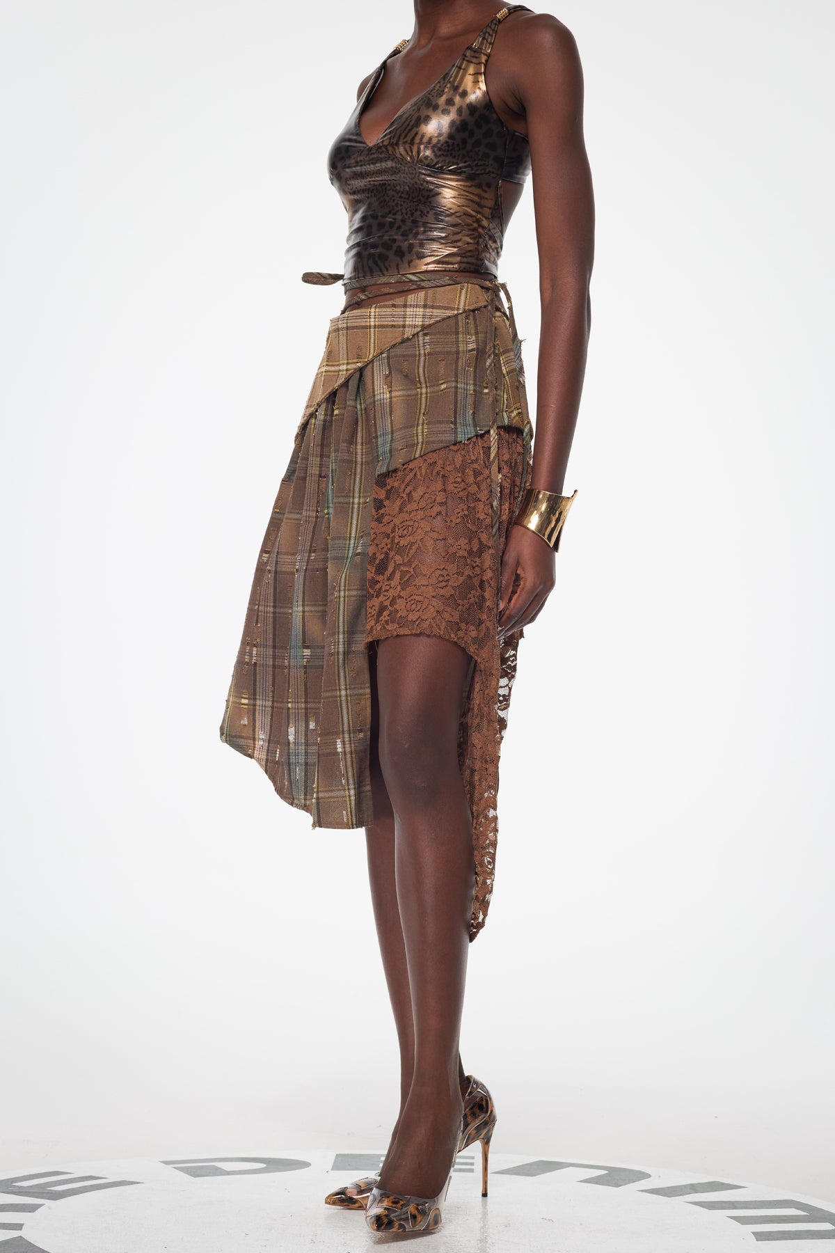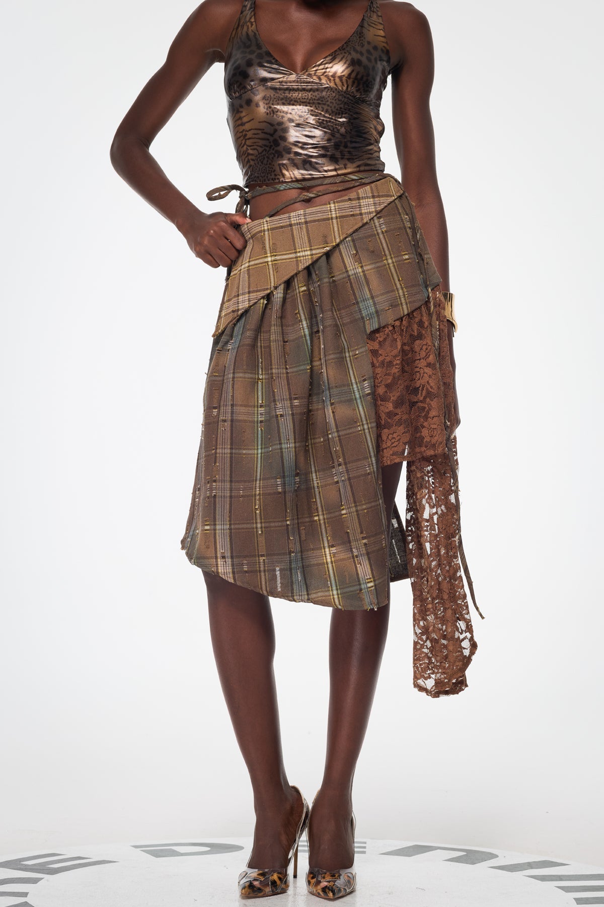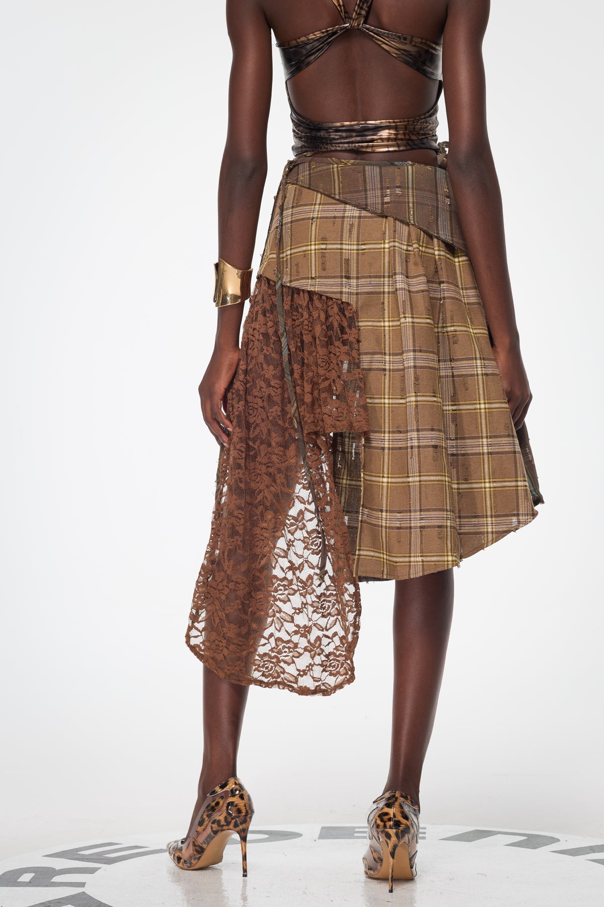 Bahman Patchwork Asimetrik Ekose Midi Etek
