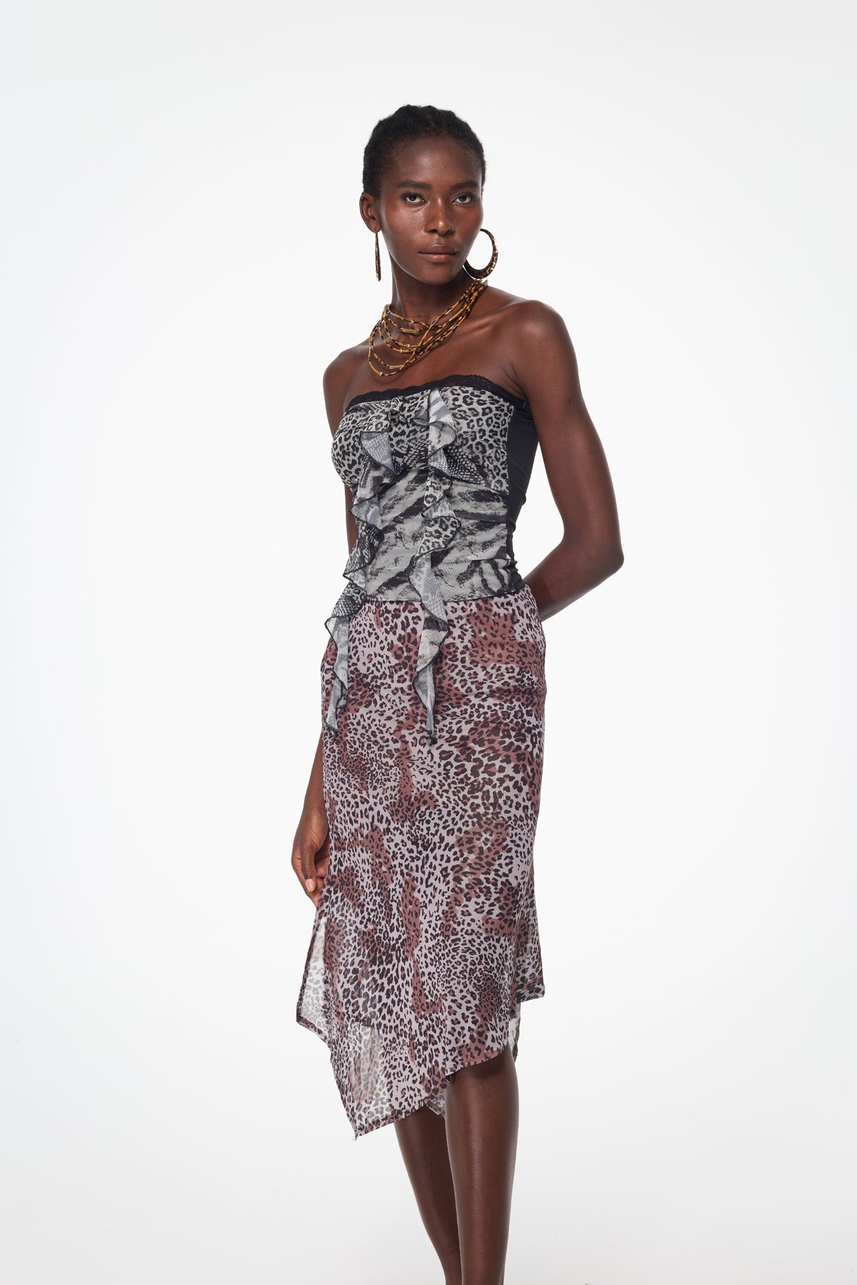 Abilene Fırfırlı Straplez Korse Mini Elbise