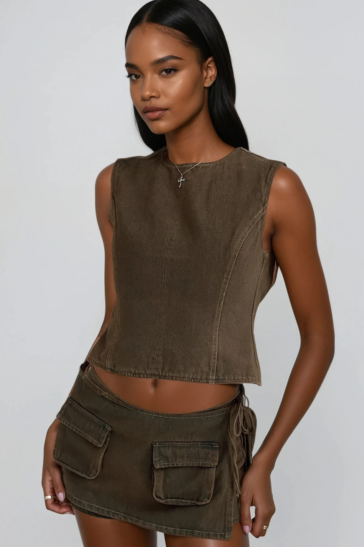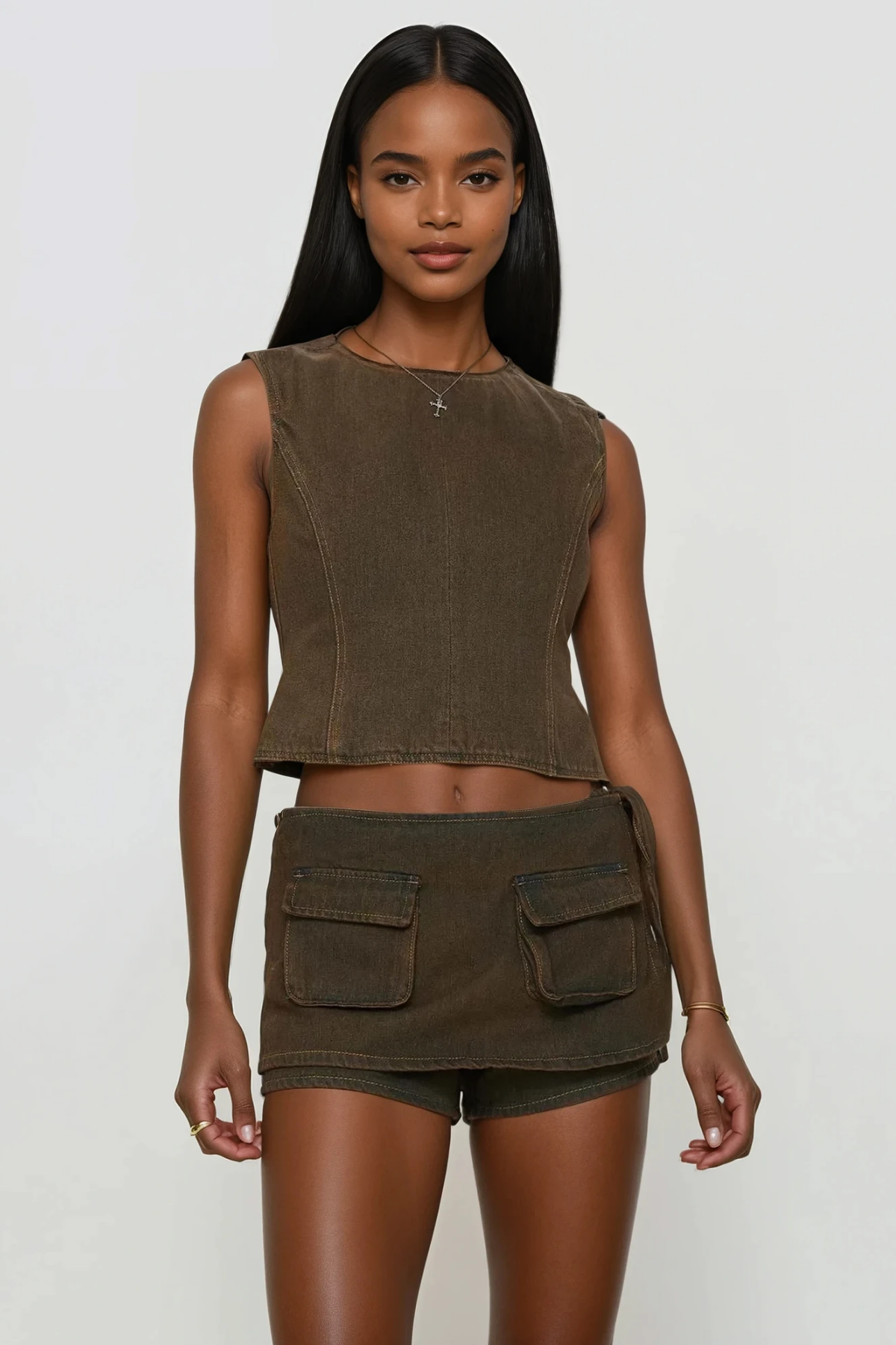 Bartholomeus Cep Deconstruct Denim Mini Etek Kahverengi