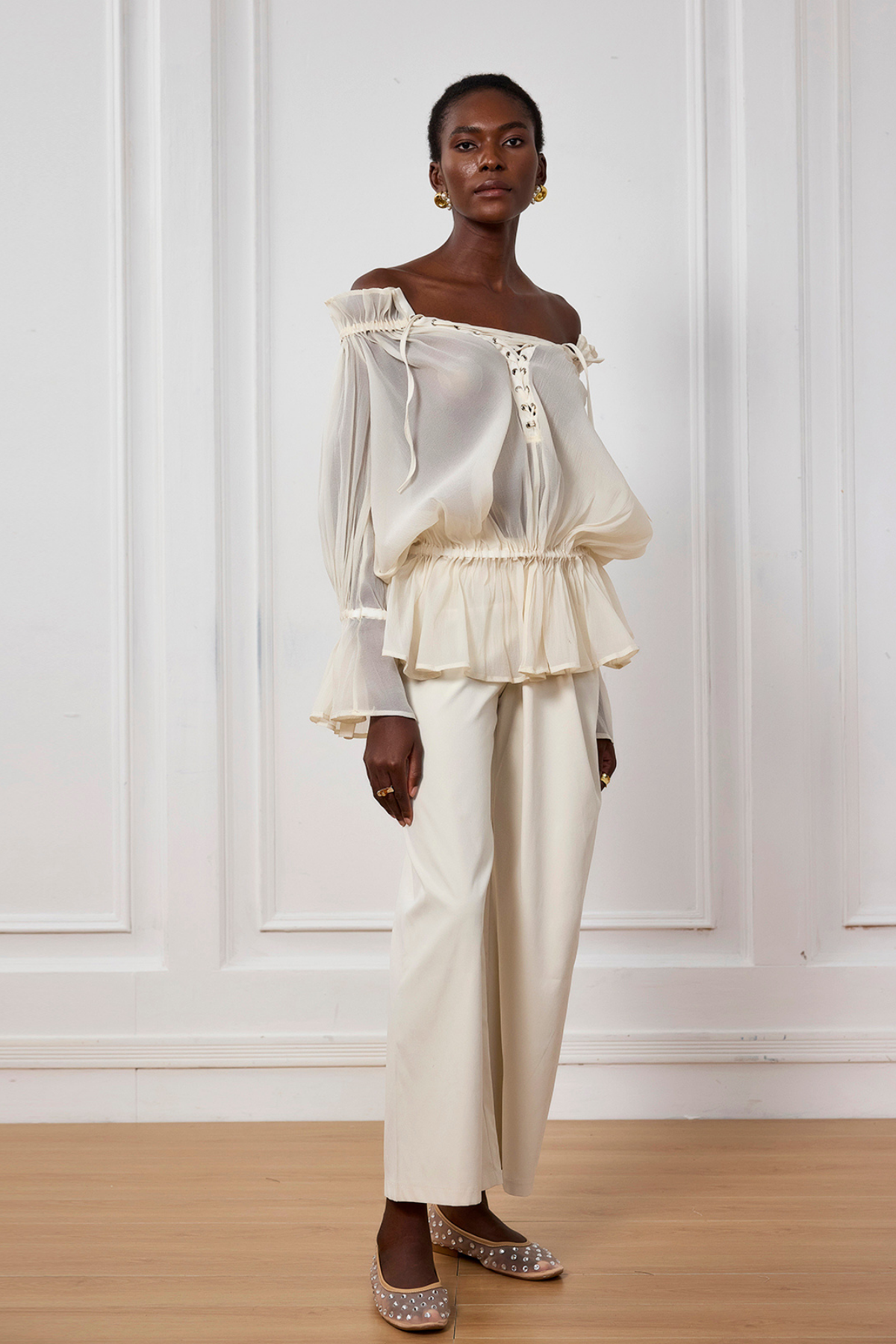 Bagheera Ruch Büzgülü Beyaz Gömlek