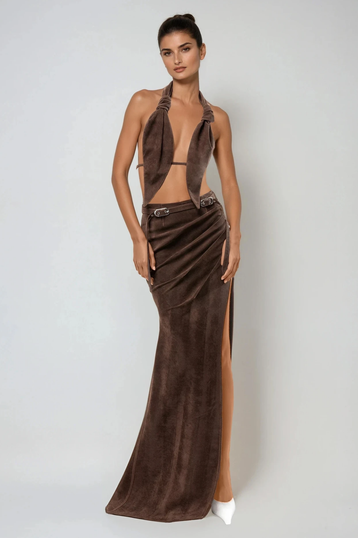 Clarinda Ruch Split Süet Uzun Etek