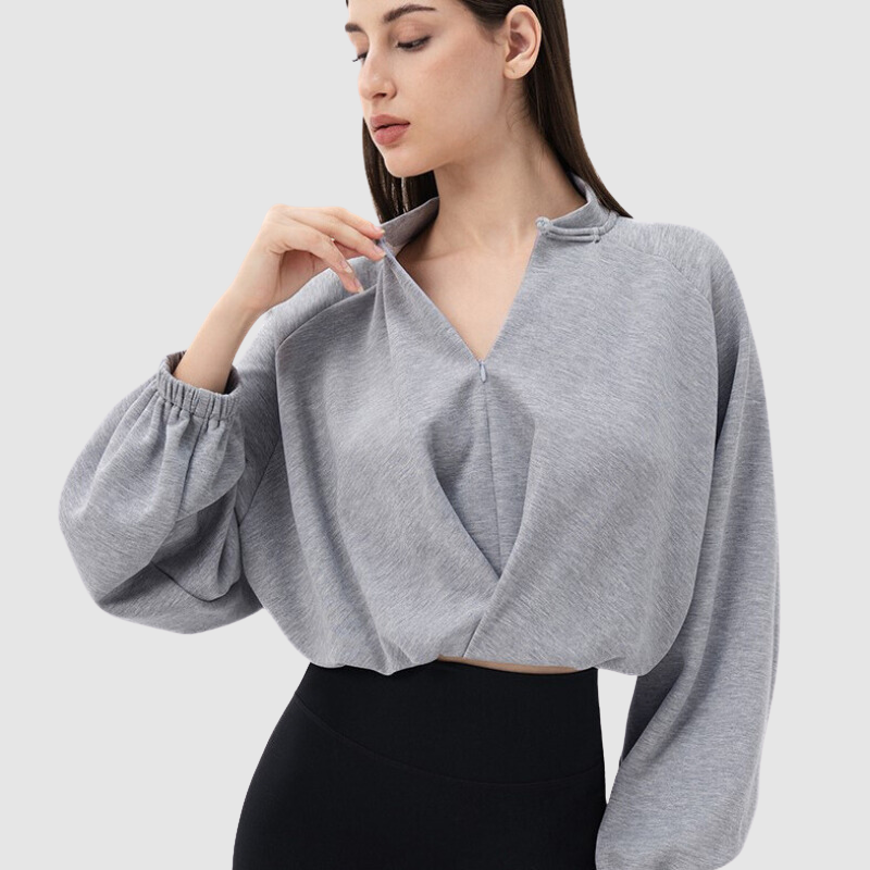 Drapeli ön kısmı ve kısa kesimi, spor veya günlük kıyafetlerin üzerine giymek için mükemmel, hoş bir silüet oluşturur.