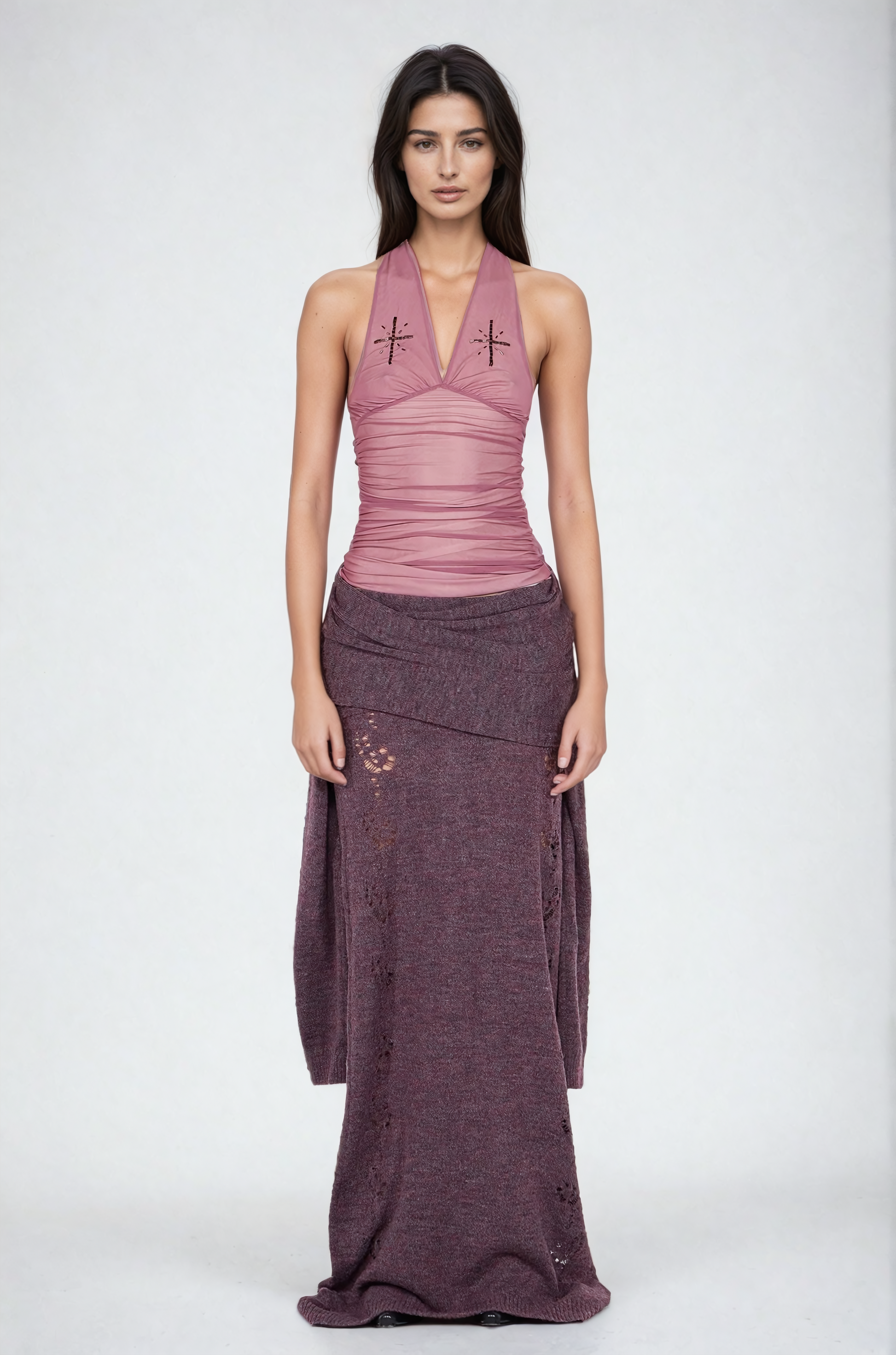 Dakota Boyundan Bağlamalı Sırtı Açık Dantelli Pembe Üst