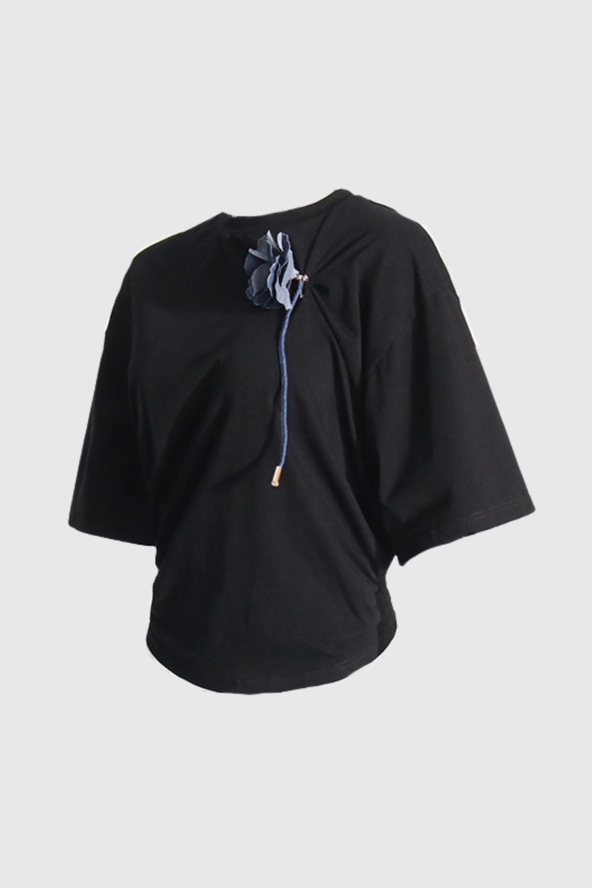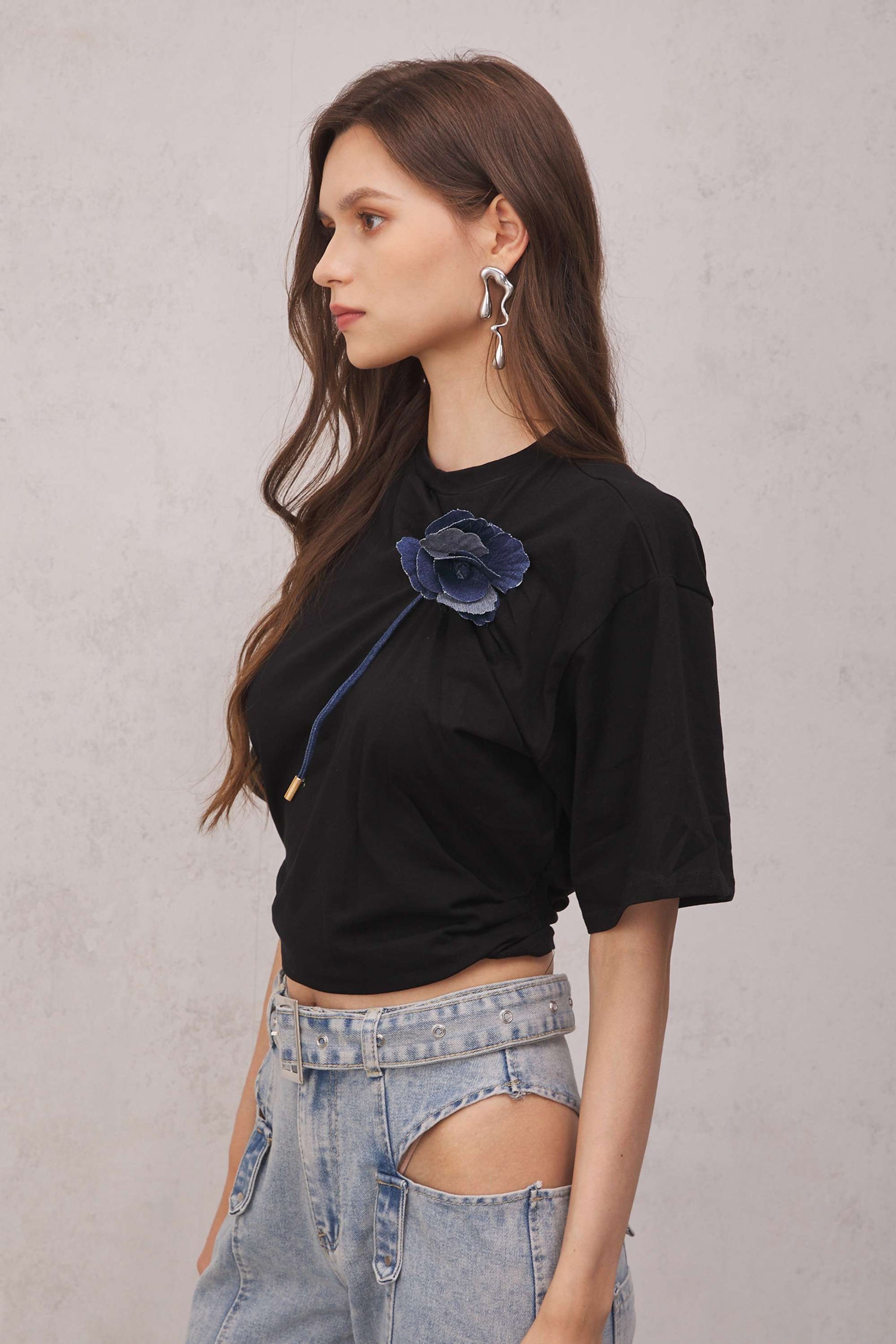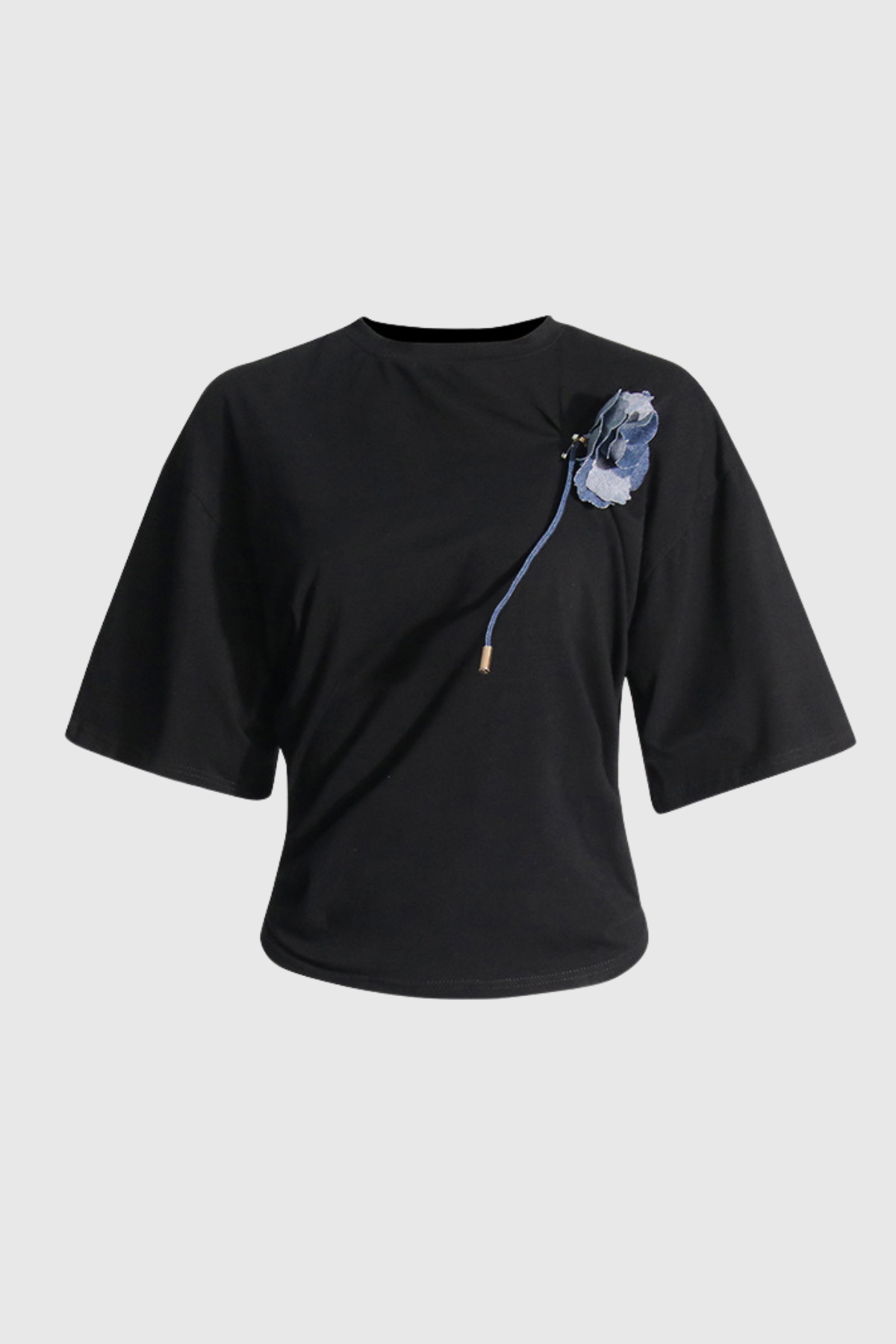 Emmalyn Dantelli Çiçek Tişört Siyah