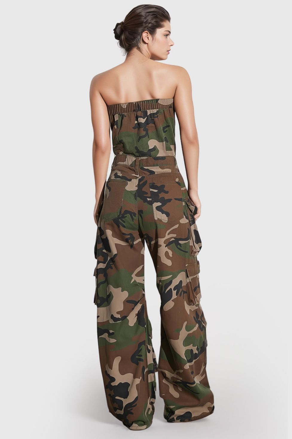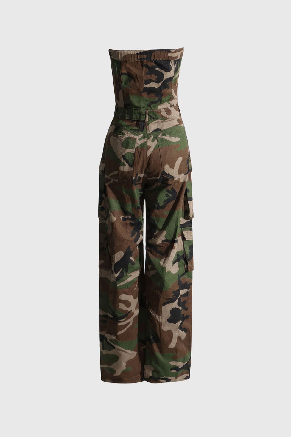 Hazel Kamuflaj Baskılı Straplez Tulum