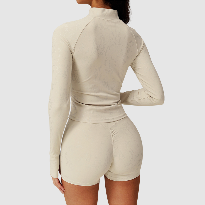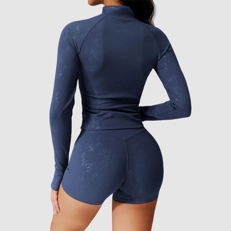 Bu yüksek yakalı, dokulu fermuarlı hırka ile spor-şık gardırobunuzu zenginleştirin. Konturlu kesimi, zarif ton desenleri ve nemi uzaklaştıran kumaşıyla bu ceket, stil ve performansı zahmetsizce bir araya getiriyor. İster antrenman yapın ister dışarı çıkın, modern tasarımı en iyi şekilde görünmenizi ve hissetmenizi sağlar.