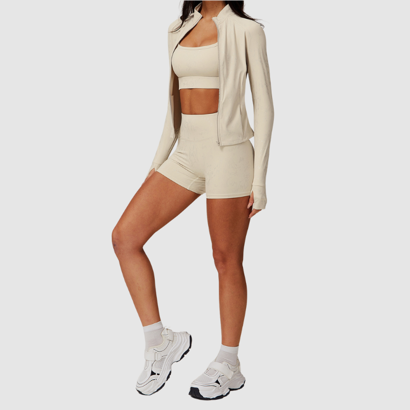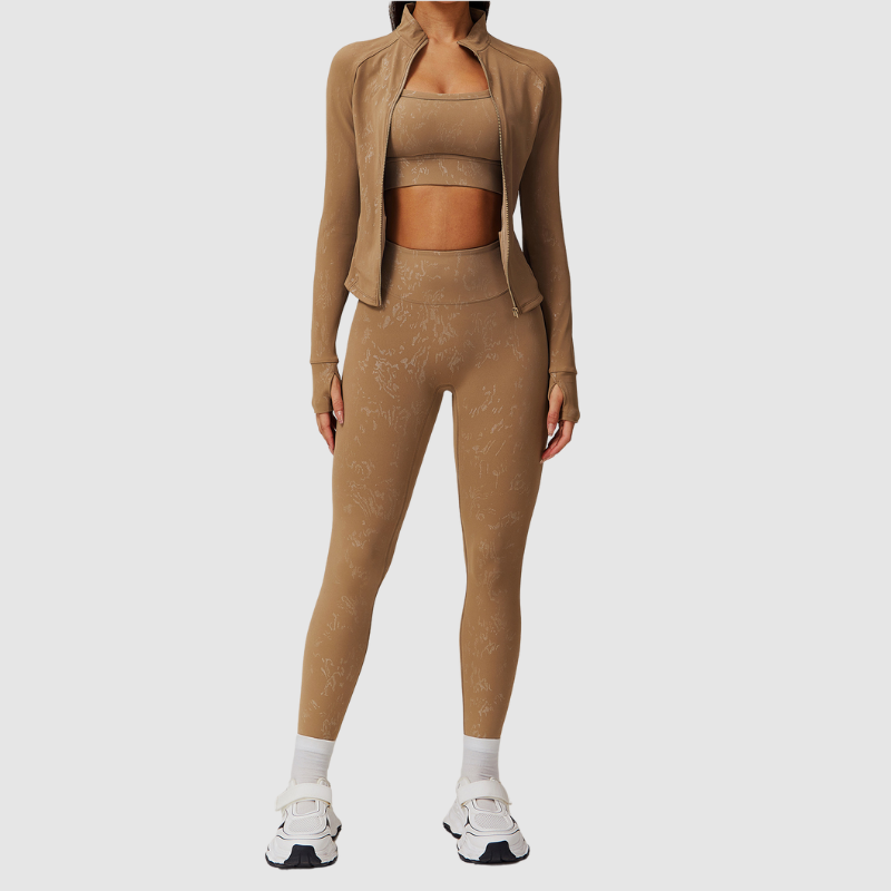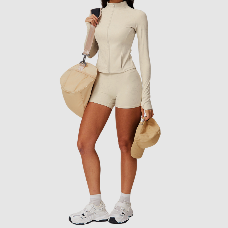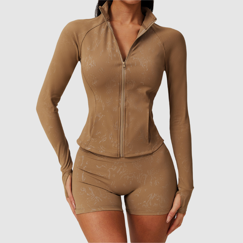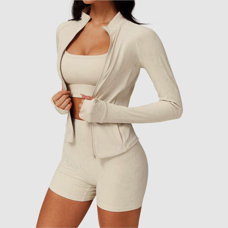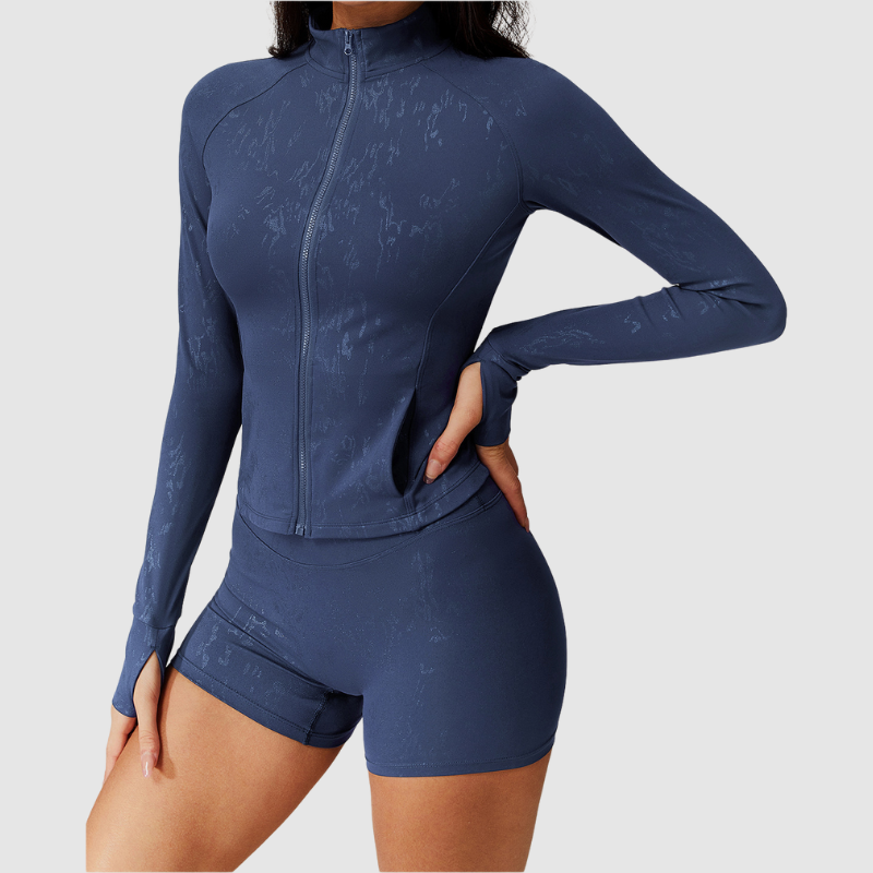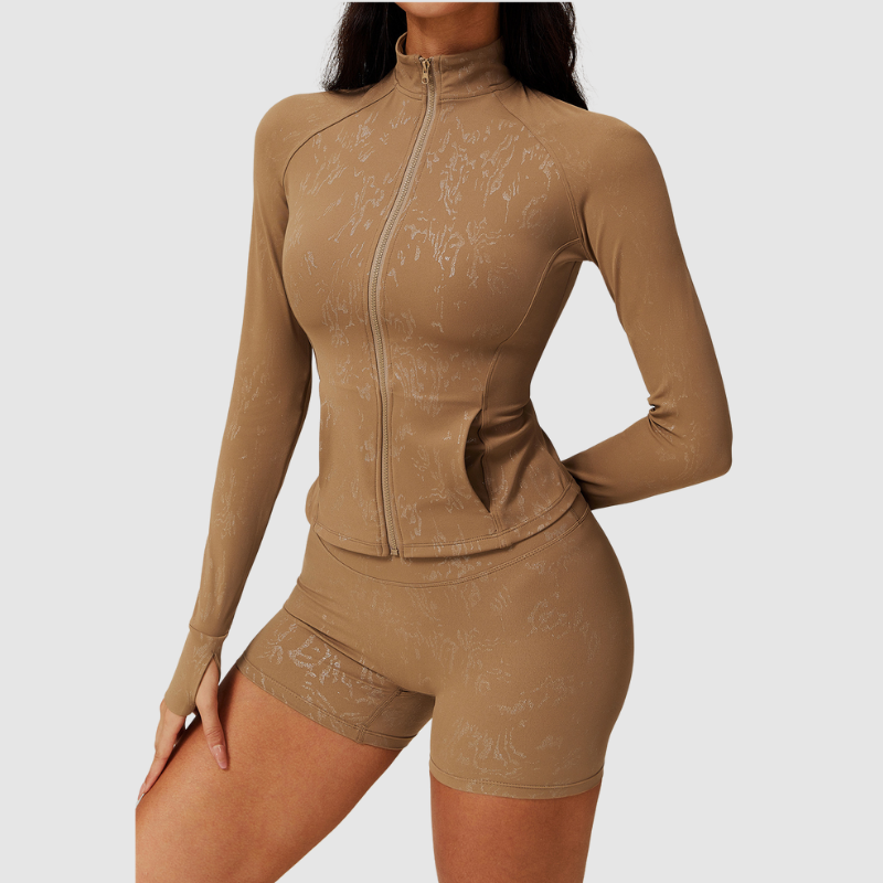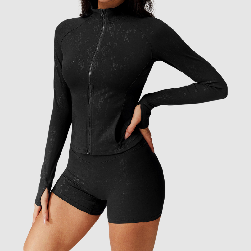 Bu ceket, spor salonundan günlük kahve molalarına sorunsuz bir şekilde geçiş yapmanızı sağlayarak hem konfor hem de şıklık sunar. Uyumlu bir spor giyim görünümü için uyumlu tayt veya şortlarla kombinleyebilir veya şık bir spor-şık havası için kot pantolonların üzerine giyebilirsiniz. Dokulu tasarımı ve işlevsel özellikleri, gardırobunuz için çok yönlü ve olmazsa olmaz bir parça olmasını sağlar.
