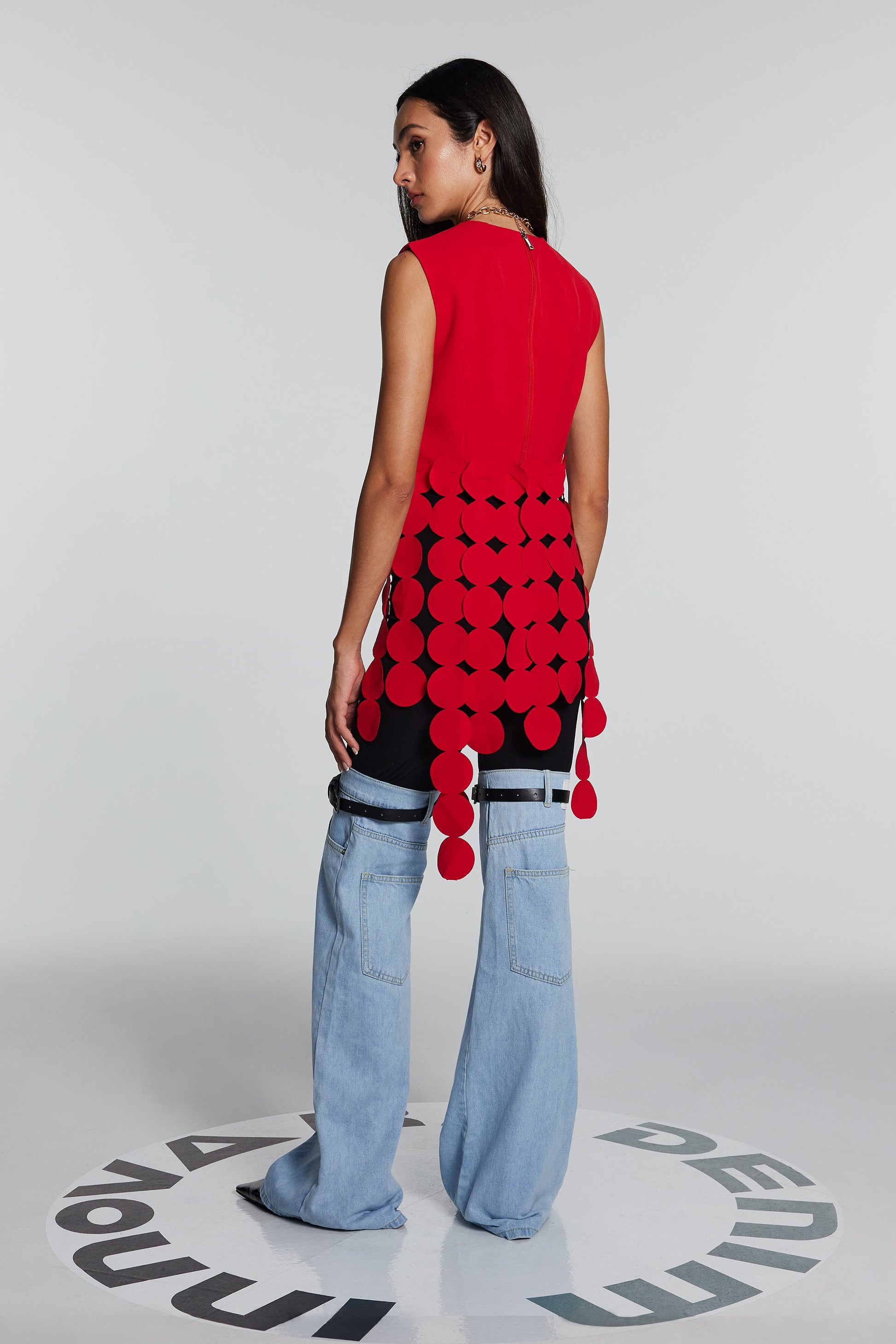 Inaya Kırmızı Daire Kesimli Püskül Üst