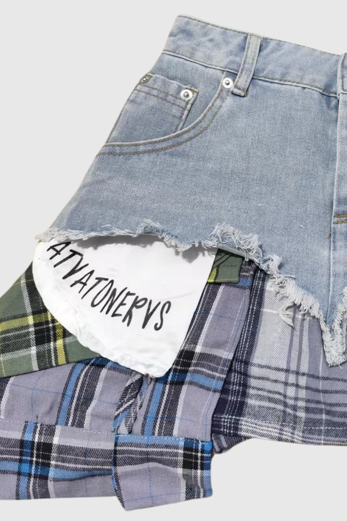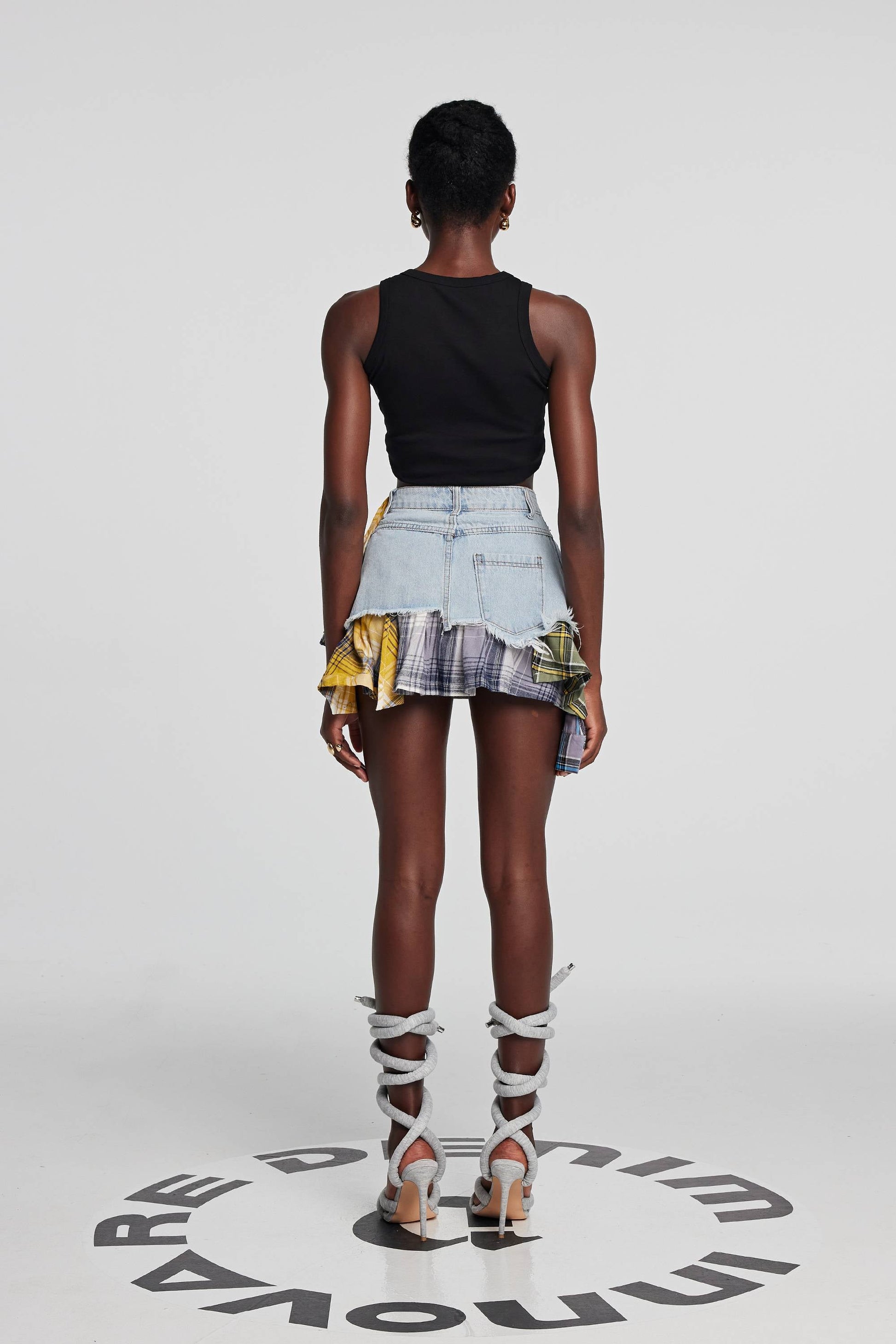 Kenna Grid Deconstruct Mavi Patchwork Mini Etek