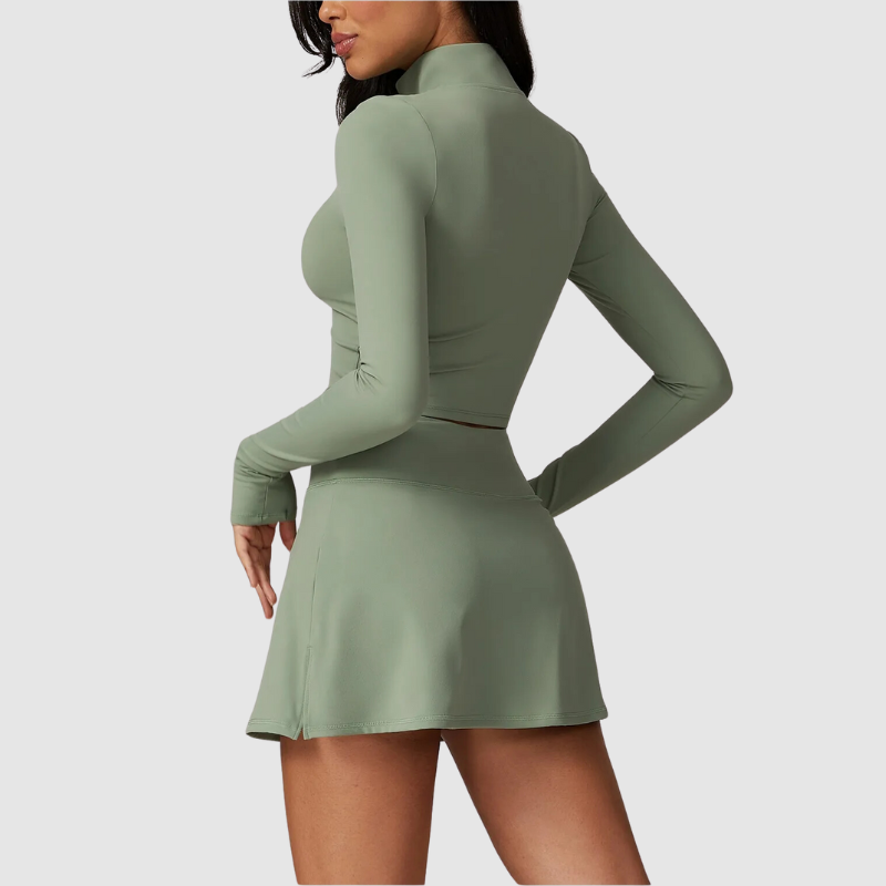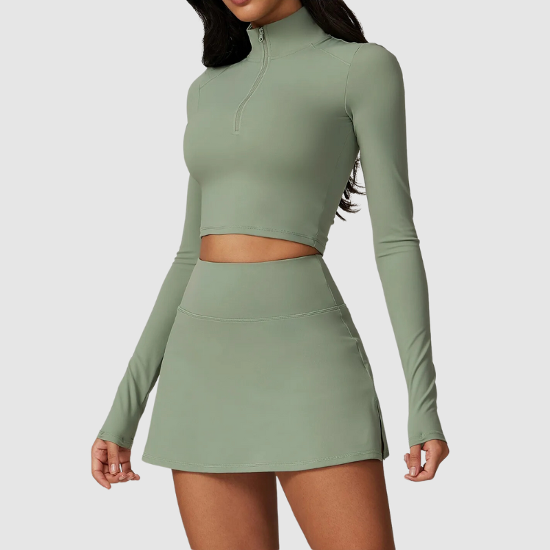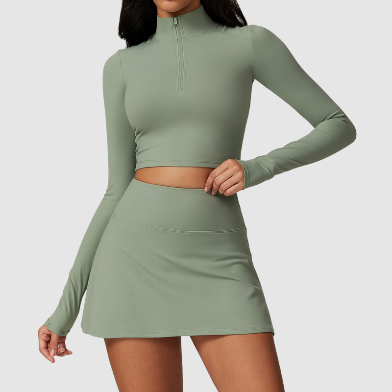 Uzun Kollu Yarım Fermuarlı Kısa Üst