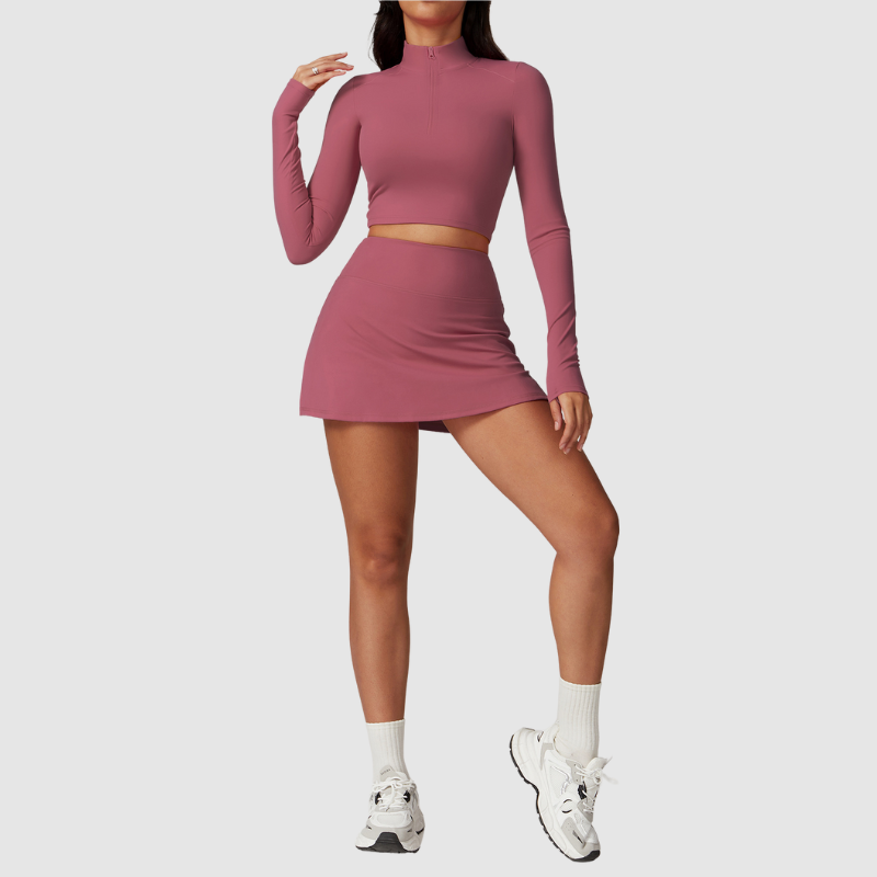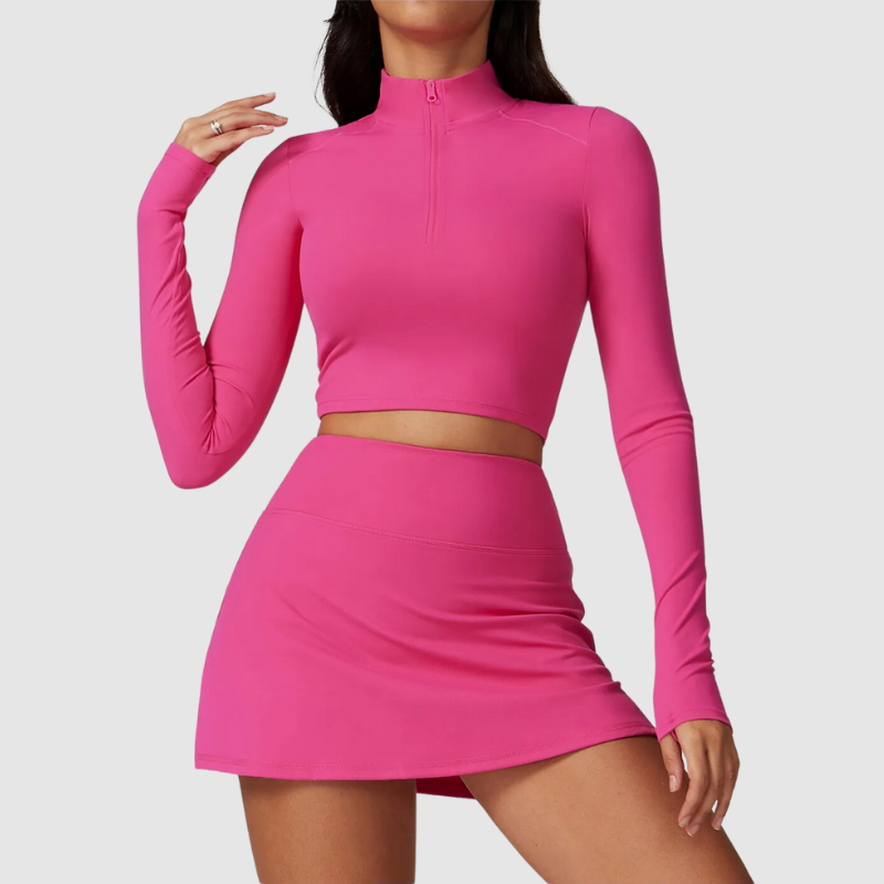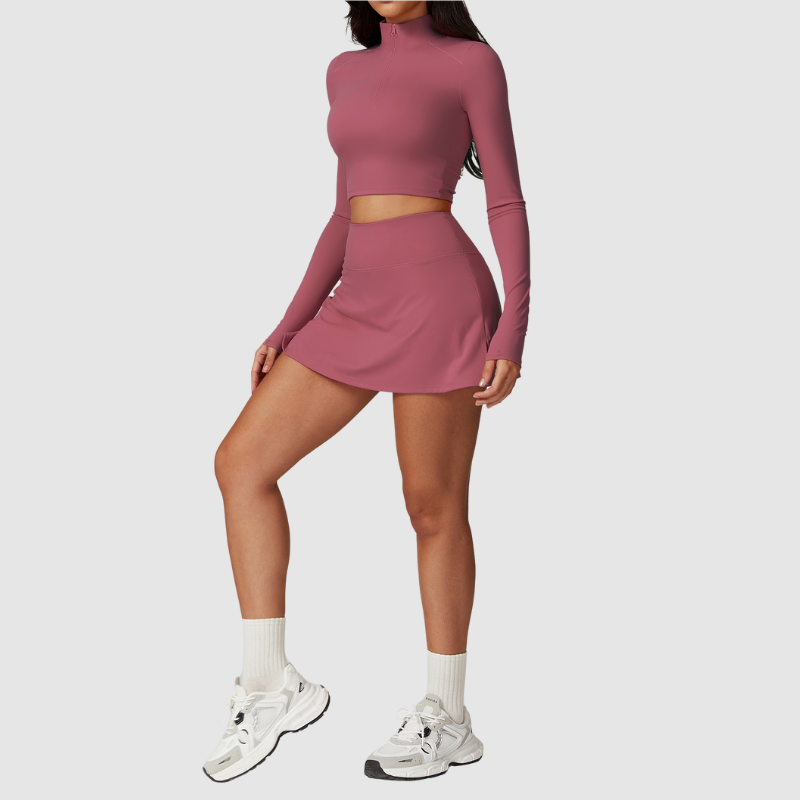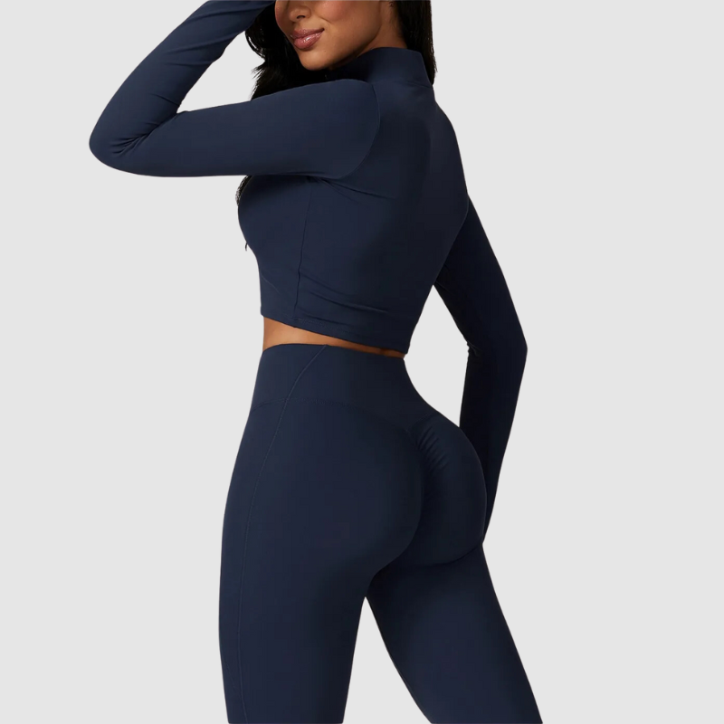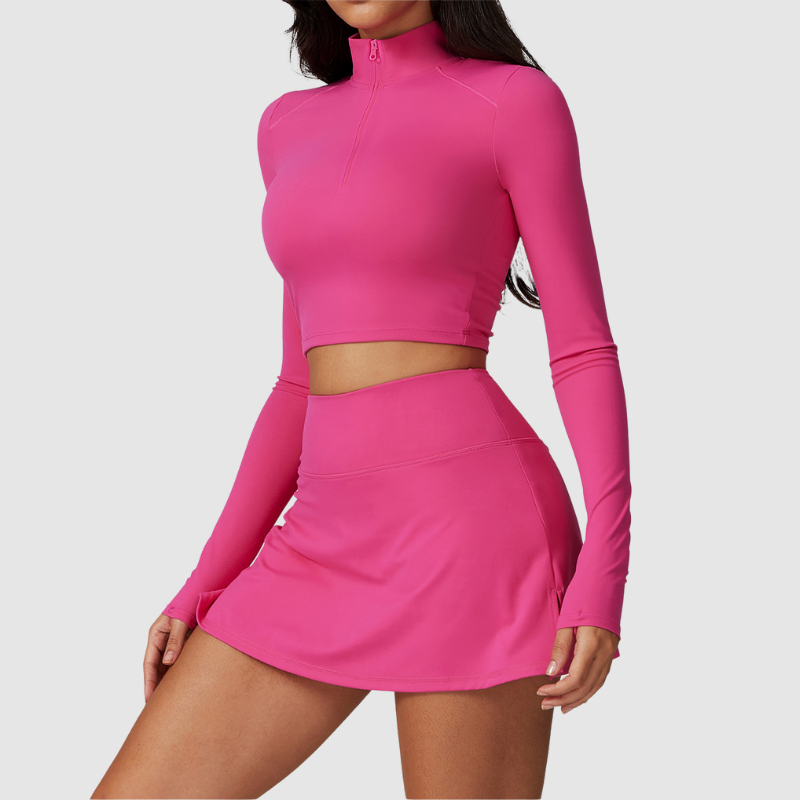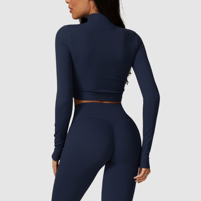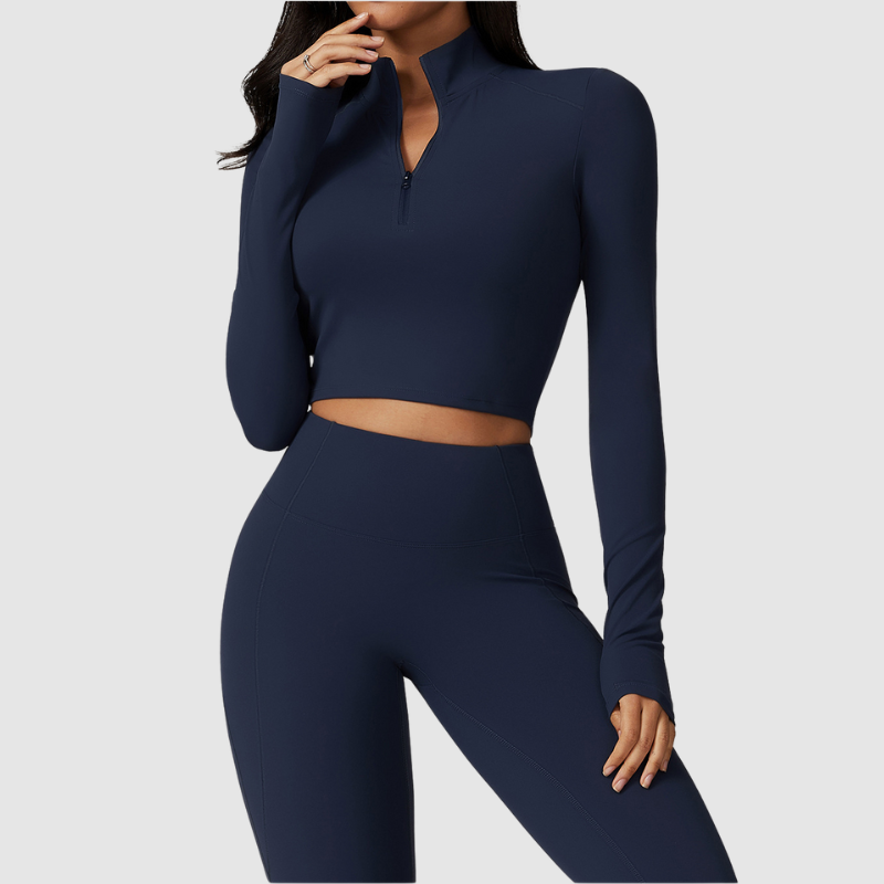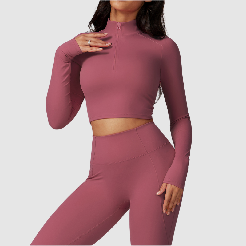 Bu uzun kollu kısa üst, modern tasarımı pratiklikle birleştiren çok yönlü bir parçadır. Şık yarım fermuar detayı ve hoş kısa kesimiyle antrenmanlar, yoga seansları veya günlük geziler için mükemmeldir. Konfor ve performans düşünülerek tasarlanan bu üst, her spor giyim gardırobunun vazgeçilmezidir.