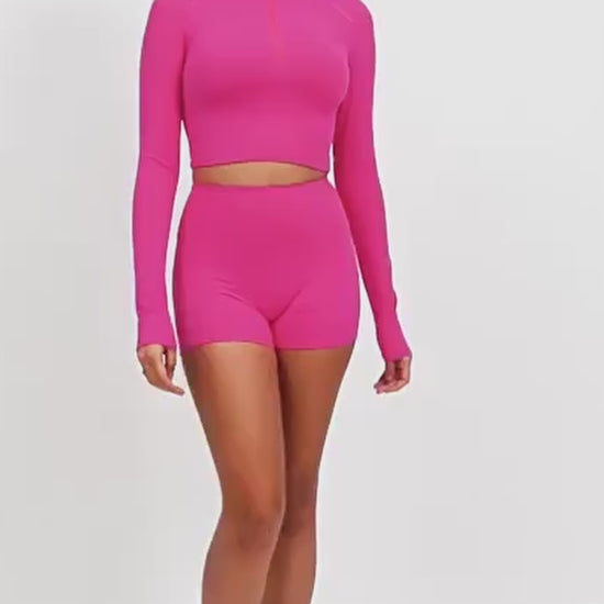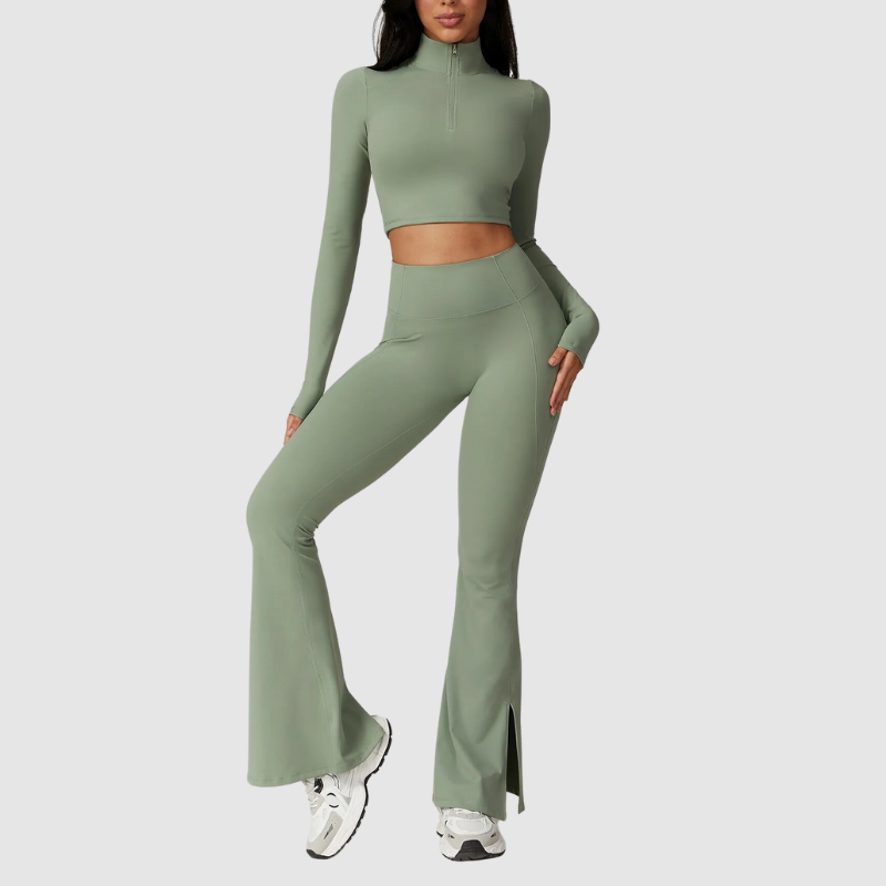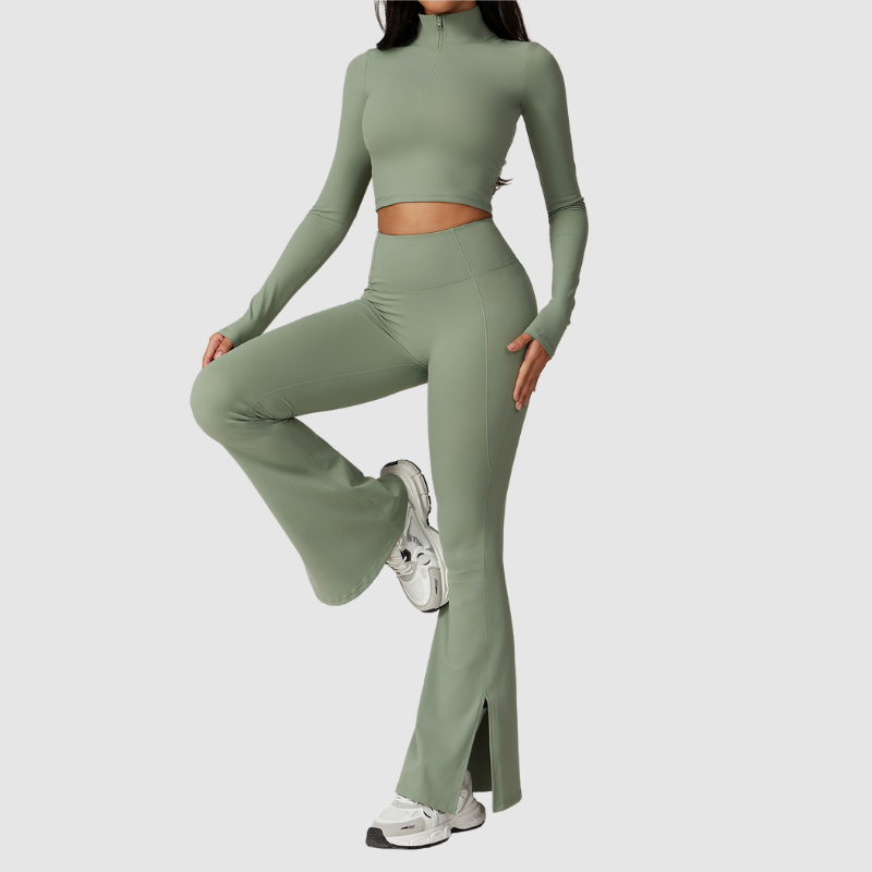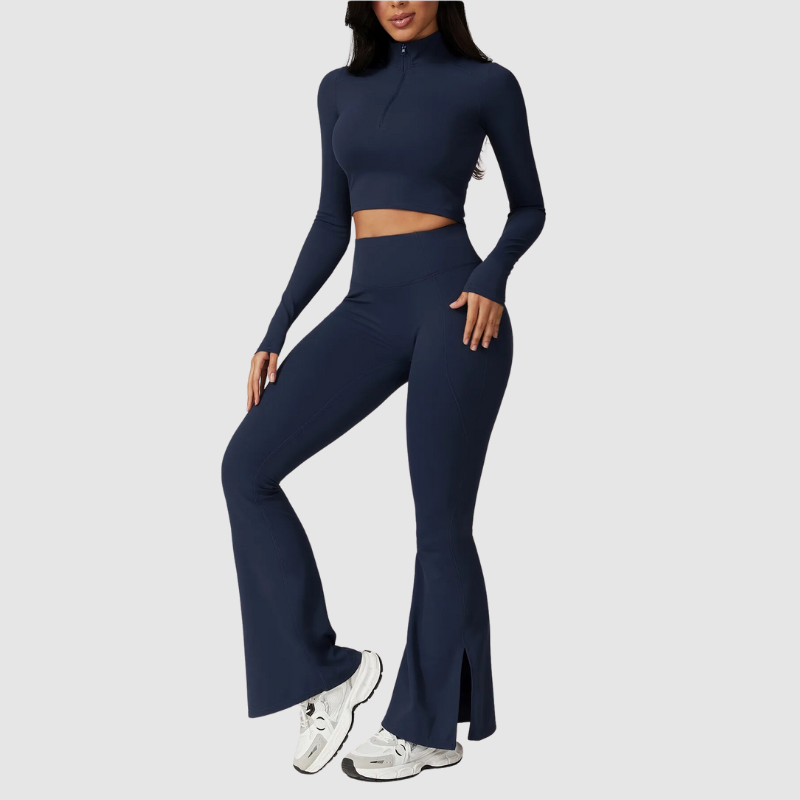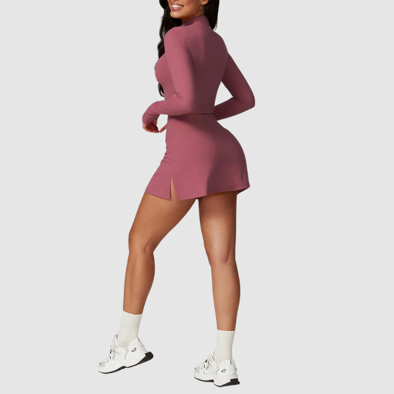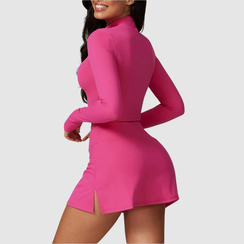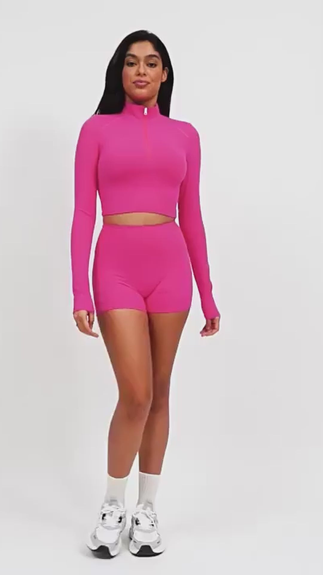 Bu uzun kollu kısa üst, modern tasarımı pratiklikle birleştiren çok yönlü bir parçadır. Şık yarım fermuar detayı ve hoş kısa kesimiyle antrenmanlar, yoga seansları veya günlük geziler için mükemmeldir. Konfor ve performans düşünülerek tasarlanan bu üst, her spor giyim gardırobunun vazgeçilmezidir.