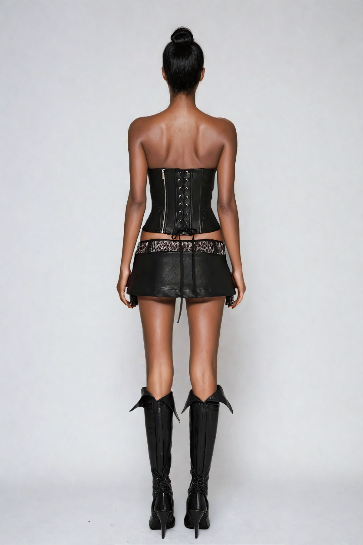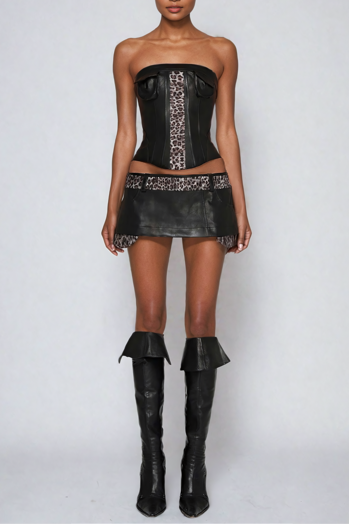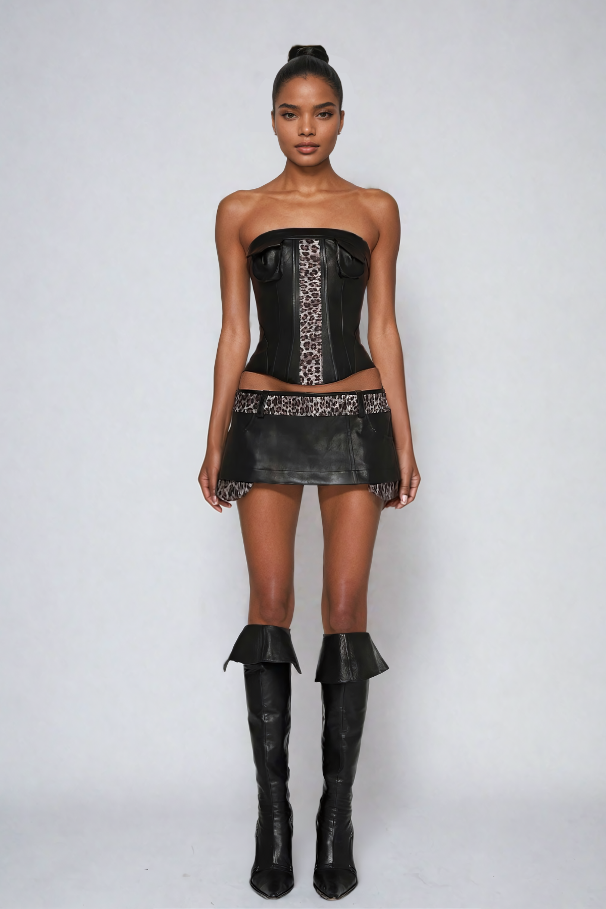 Mihika Siyah Leopar Deri Etek Takım