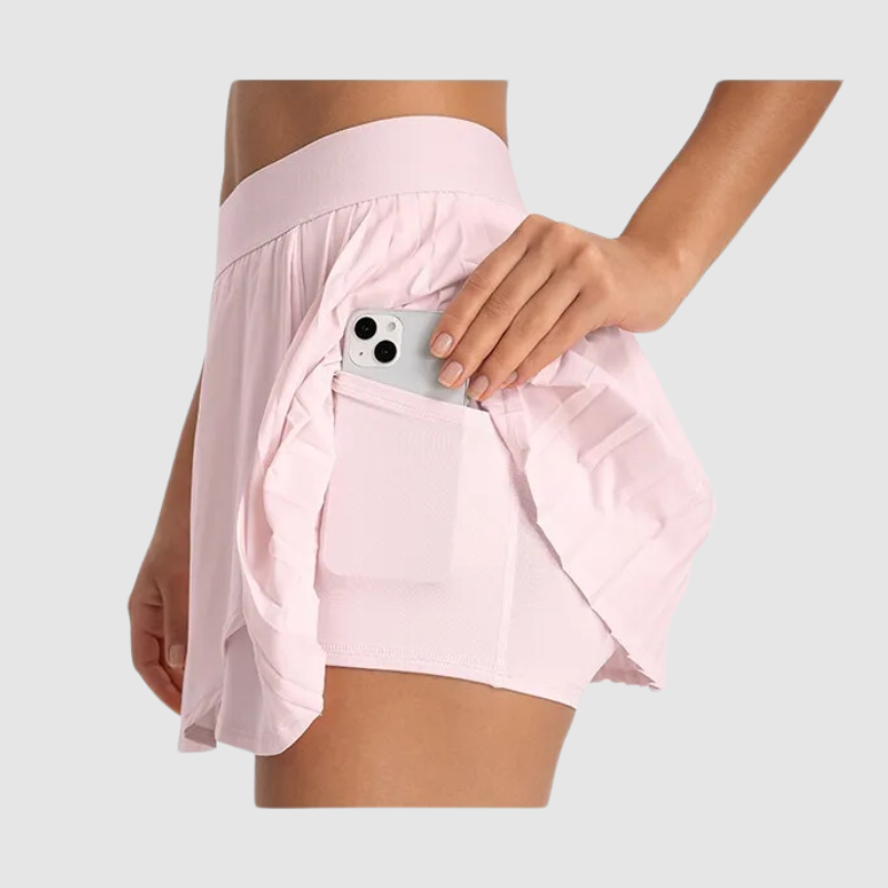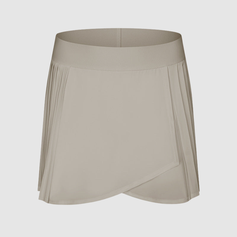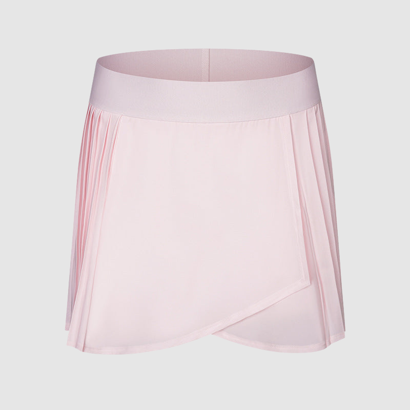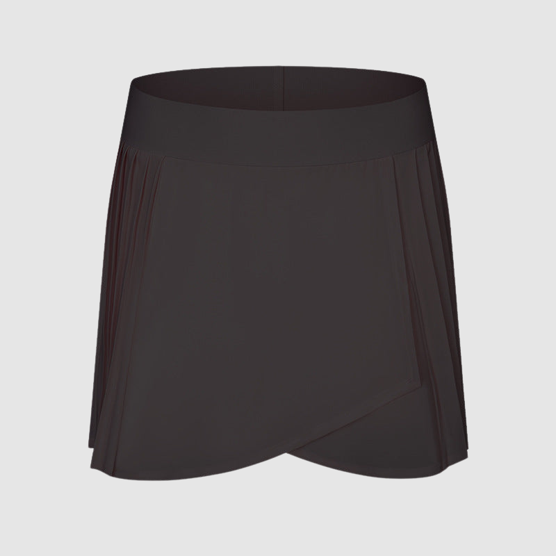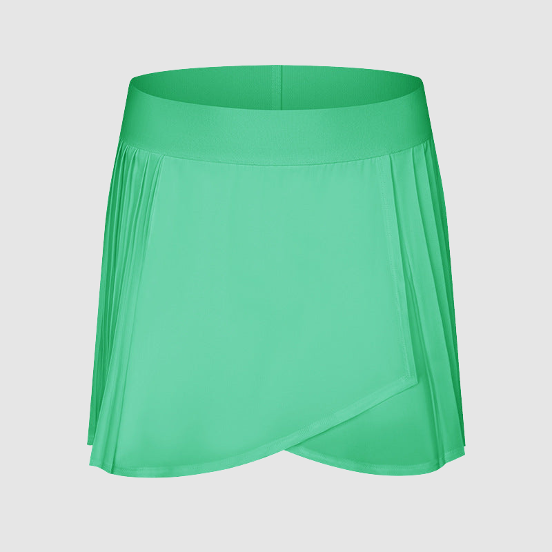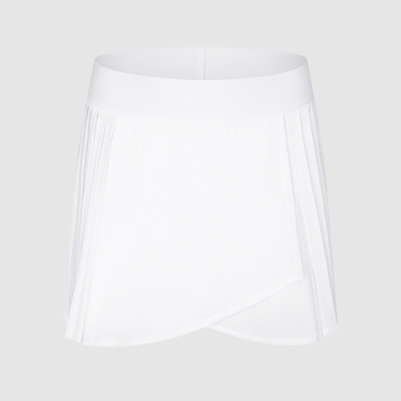 Bu pileli, sarmalı tenis eteği, zarafet ve pratikliğin mükemmel bir karışımıdır. Zarif bir sarma tasarımı ve klasik pile detaylarıyla, korttan günlük kullanıma zahmetsizce geçiş sağlayan zarif bir kesim sunar. Yüksek bel bandı destek sağlarken, dahili şort aktif hareket için güven ve rahatlık katar.