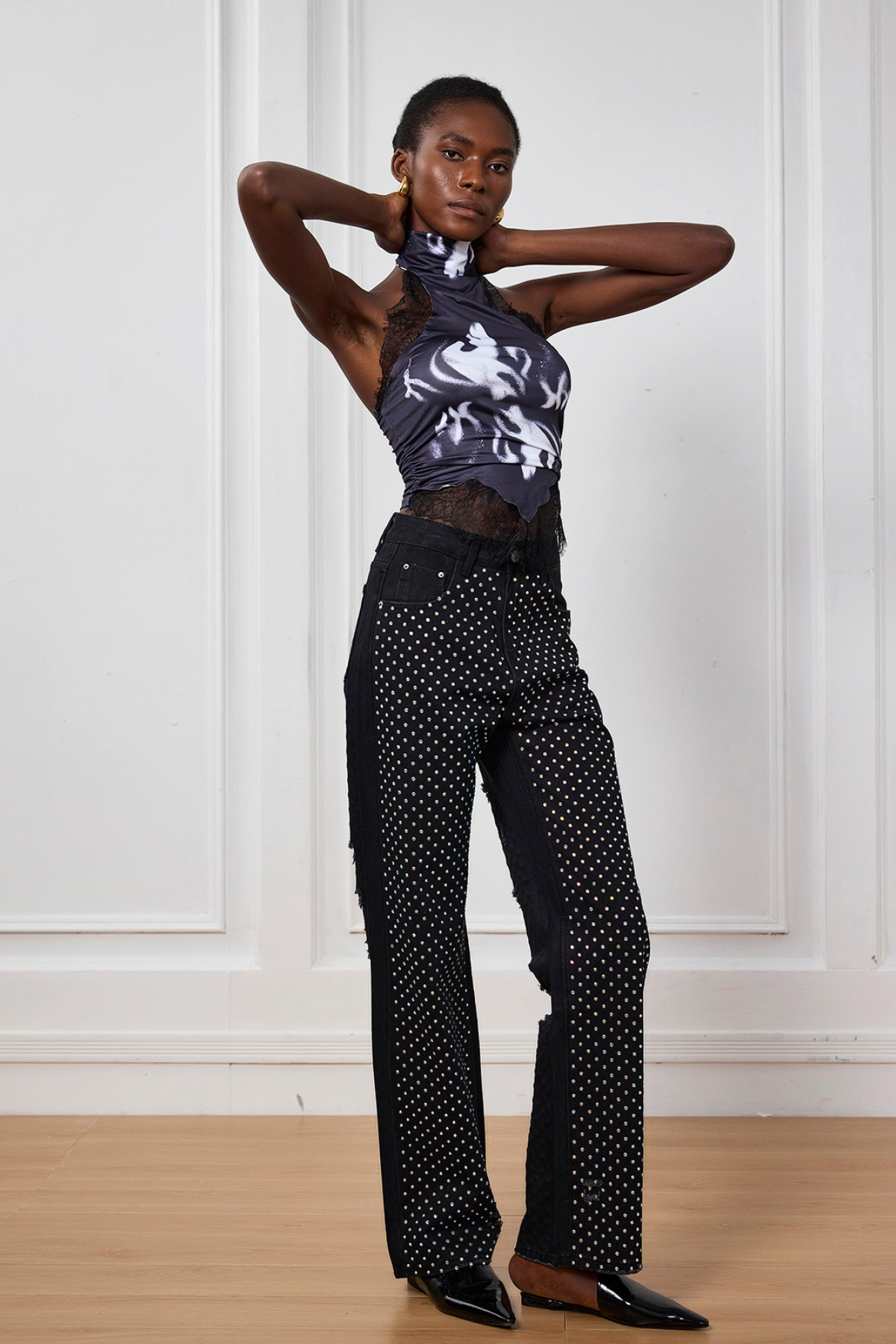 Adsila Deconstruct Siyah Dantel Yaka Blazer