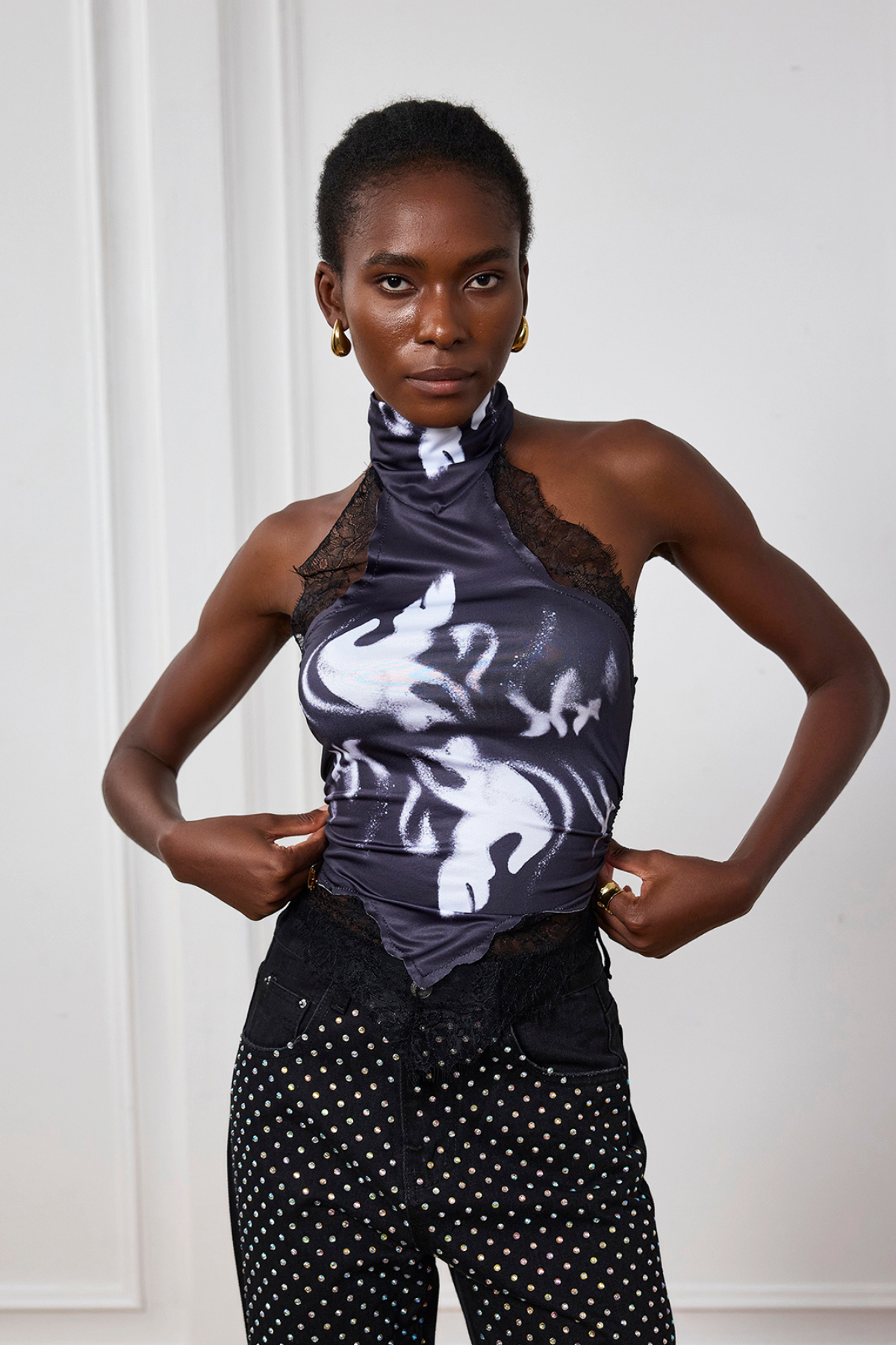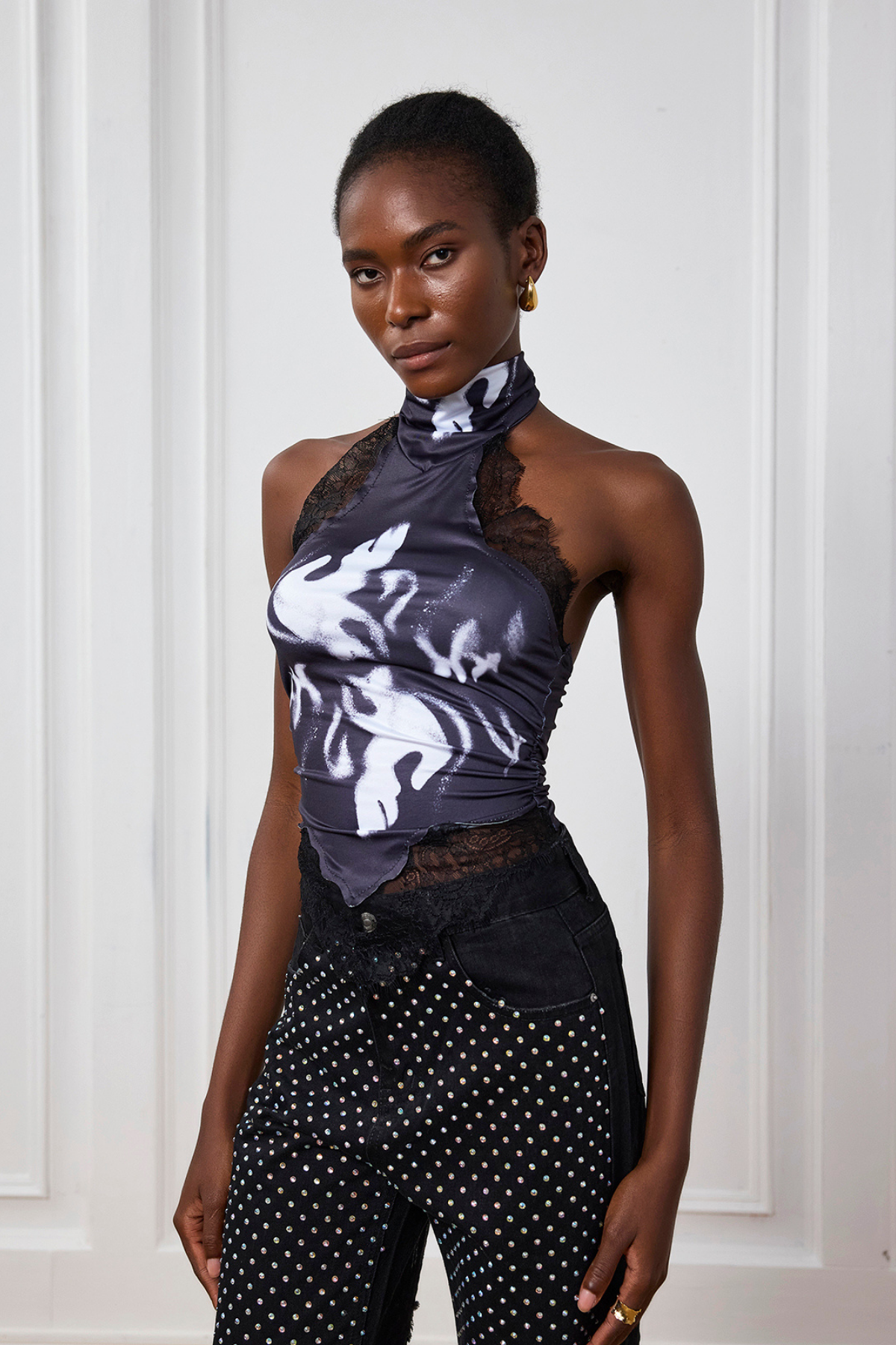 Safir Dantelli Boyundan Bağlamalı Sırtı Açık Üst