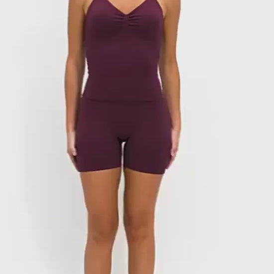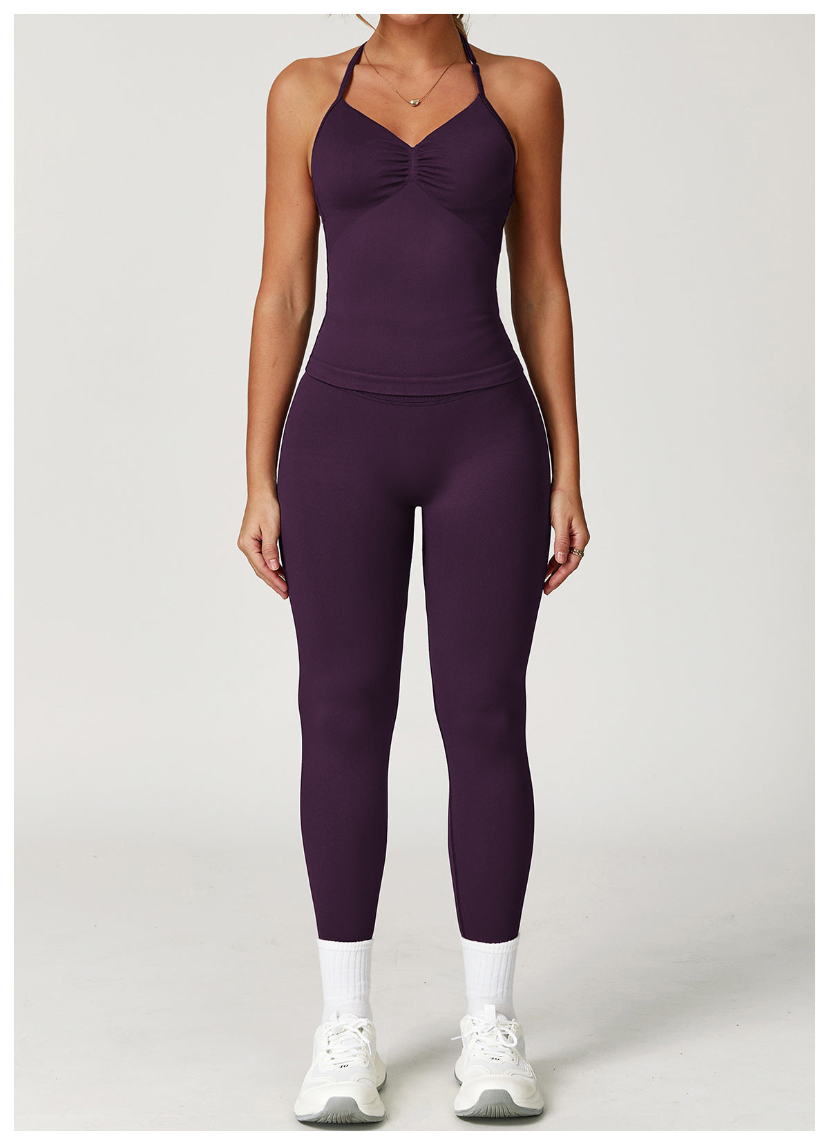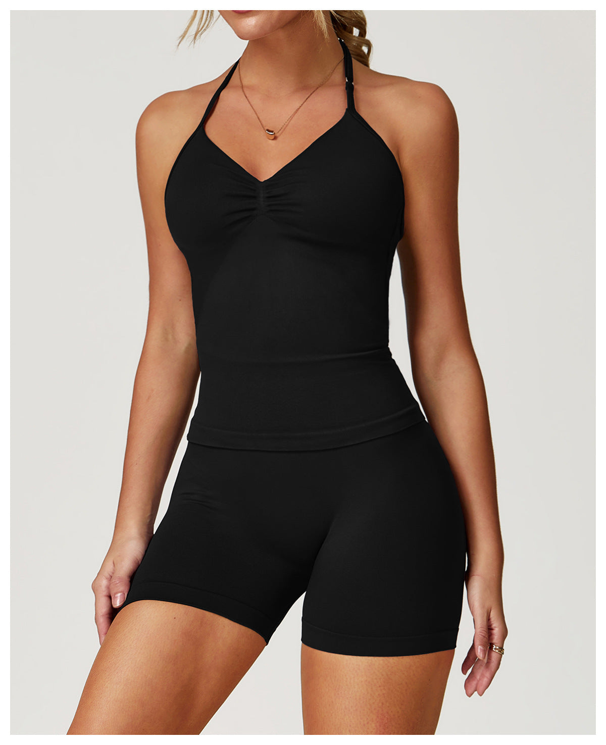 SculptFit Büzgülü Halter Üst ile tanışın - spor giyim tarzınızı pürüzsüzleştirmek, desteklemek ve bir üst seviyeye taşımak için tasarlanmış minimal bir şaheser. Toparlayıcı göğüs kısmı ve şık açık sırtlı halter siluetiyle bu üst, kıvrımlarınızı sararken omuzlarınızın nefes almasını sağlar. Pilatesten ders sonrası smoothielere kadar her şey için mükemmel.