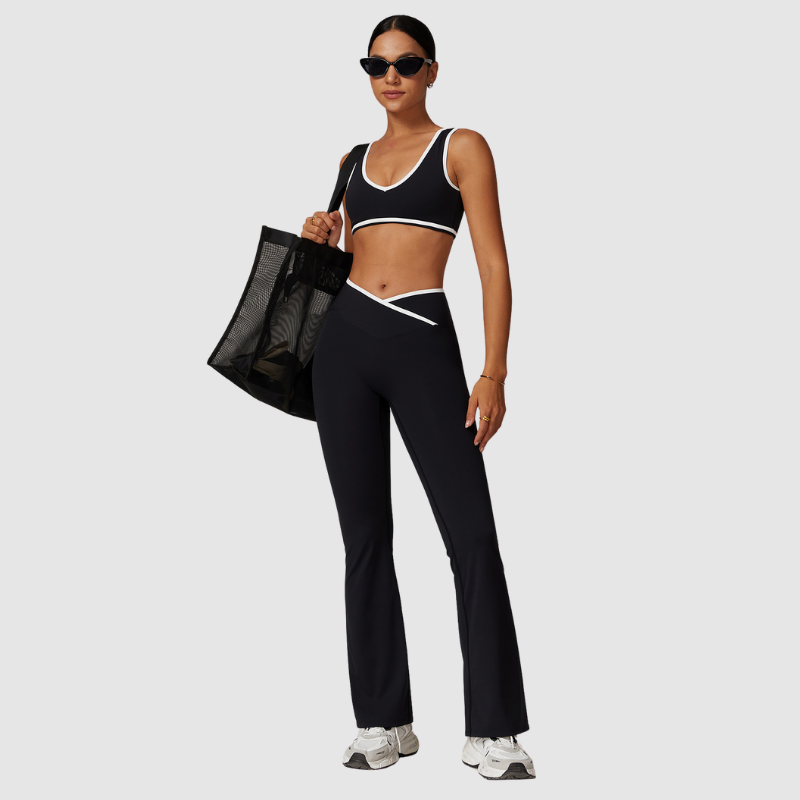 V Bel Geniş Paçalı Tayt ve Bra Spor Sütyeni Takımı