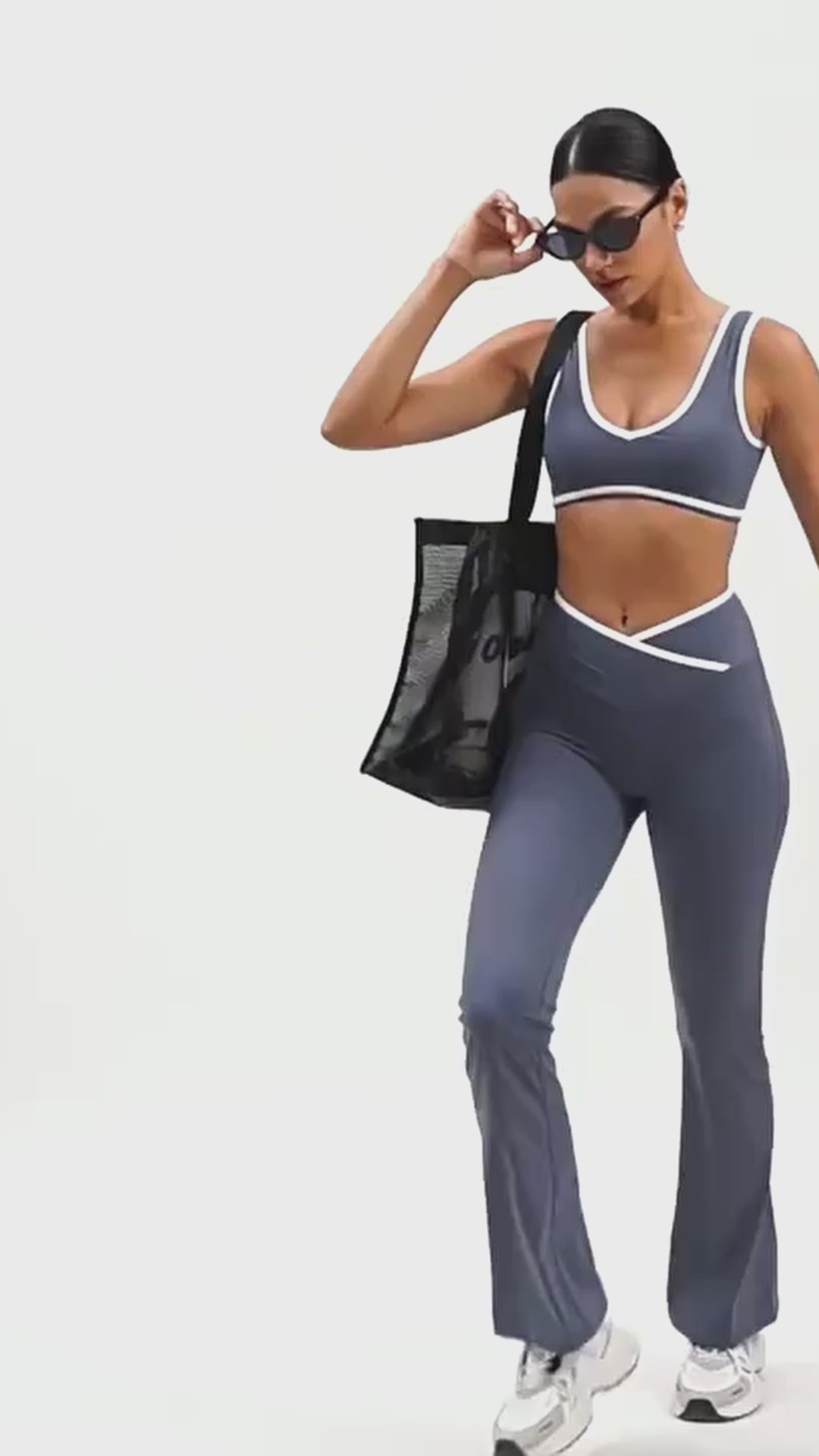 Bu iki parçalı set, konturlu V bel kloş tayt ve şık, destekleyici bir spor sütyenini bir araya getirerek göz alıcı bir spor-şık görünüm yaratıyor. Antrenmanlar veya günlük geziler için mükemmel olan bu set, gün boyunca rahat ve özgüvenli kalmanızı sağlamak için nem emici teknolojiye sahip yumuşak, esnek kumaştan üretilmiştir. İster spor salonunda ister arkadaşlarınızla dışarıda olun, bu set hem işlevsel hem de şıktır.